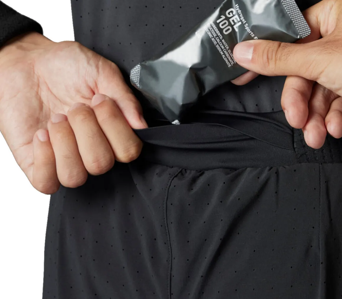 Gli short hanno una tasca sul retro del girovita e due tasche anteriori, il girovita è elasticizzato e ha un cordino per regolare la vestibilità.