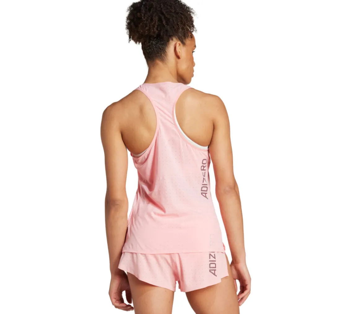 La canotta Adidas Adizero Tank da donna è progettata con la tecnologia antiumidità AEROREADY che fa evaporare velocemente il sudore.