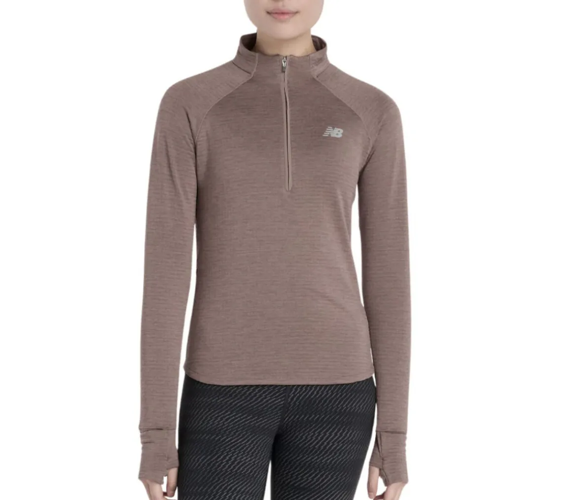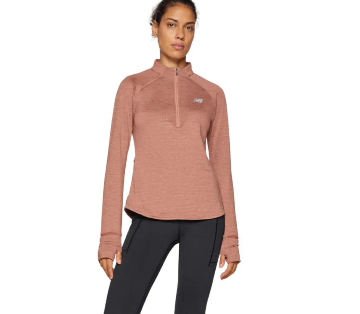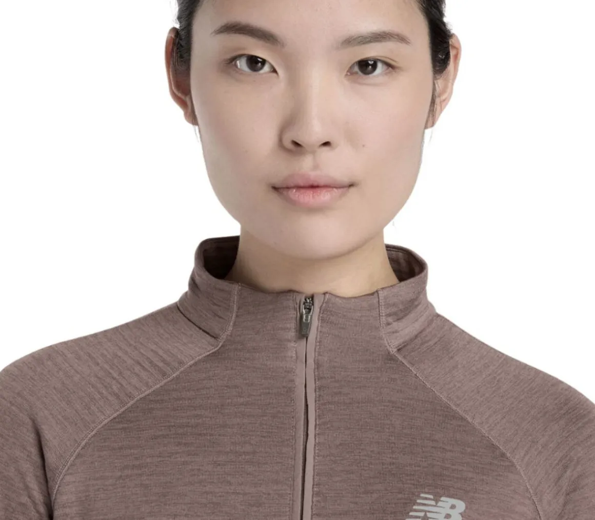 La maglia New Balance Athletics Heat Grid ½ Zip da donna è progettata con la tecnologia NB HEAT che trattiene il calore per mantenere il corpo al caldo ed eliminare l’umidità.