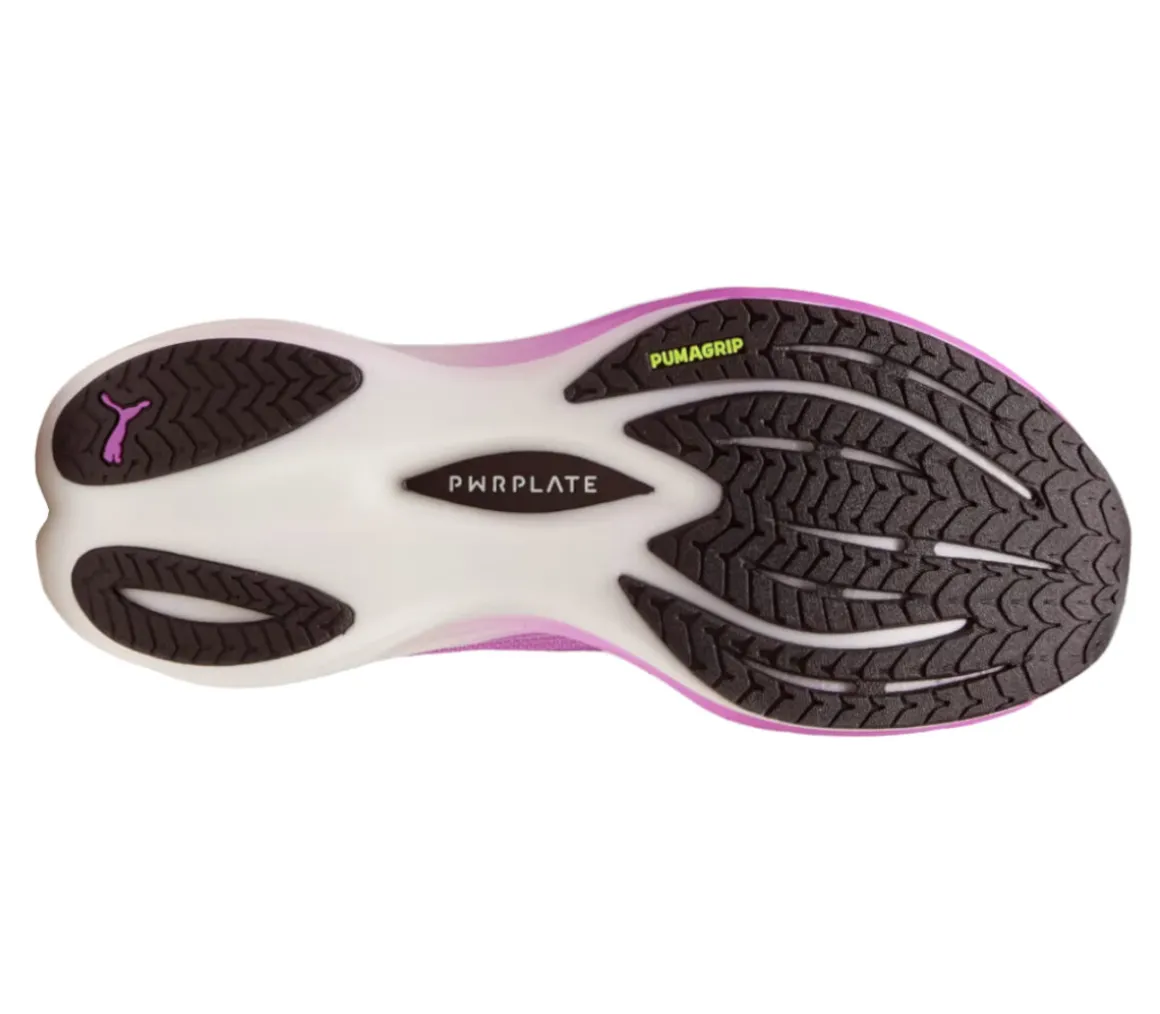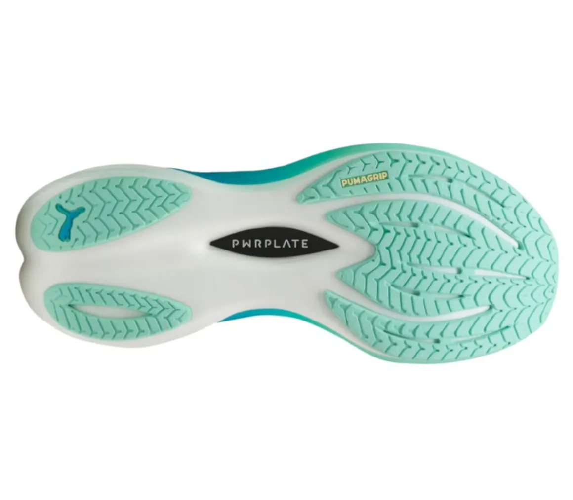 La piastra in fibra di carbonio PWRPLATE, rende l’intersuola più stabile e assicura un maggior trasferimento di energia per una corsa propulsiva.