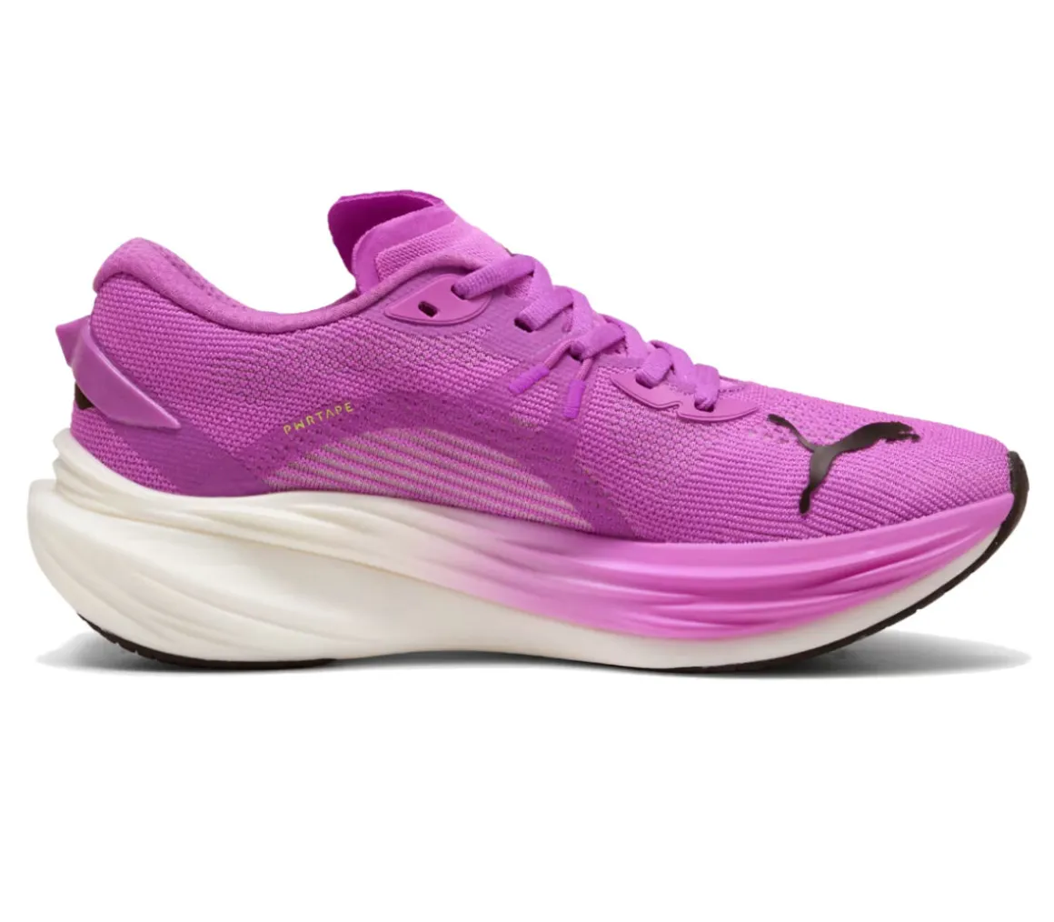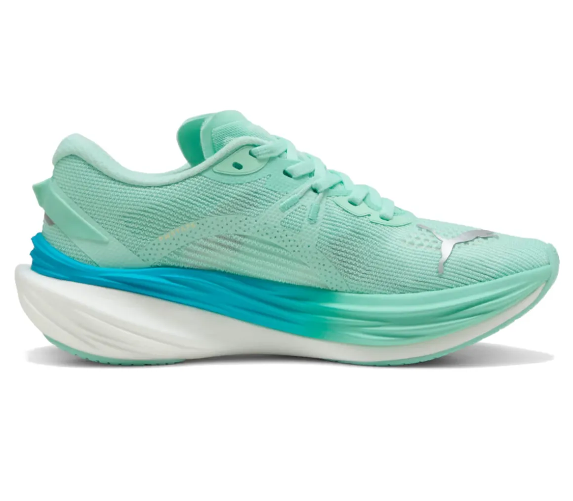 La Puma Deviate Nitro 3 è una scarpa versatile che assicura ammortizzazione, velocità e reattività per le competizioni, grazie all’unione della schiuma NitroFoam e la piastra in carbonio PWRPLATE.