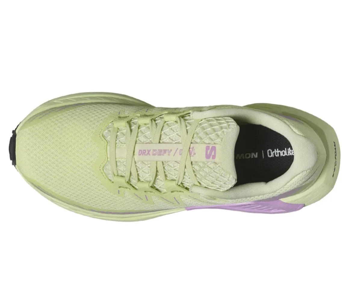 La Salomon DRX Defy GRVL è una scarpa da running perfetta per le runner medio leggere che si allenano per medie e lunghe distanze, sia su strada che su sterrato, grazie alla mescola Active Chassis.