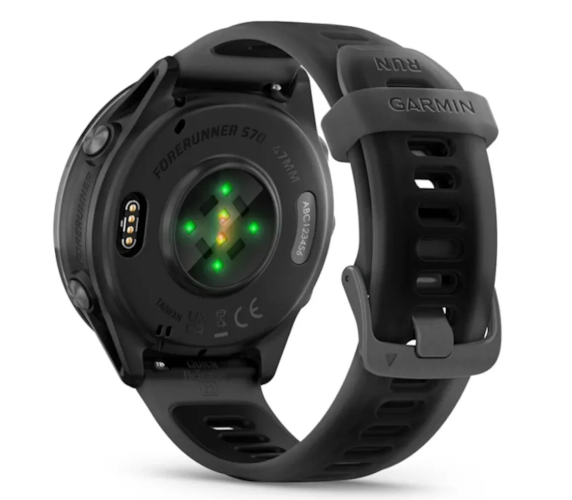 Il Garmin Forerunner 570 47 mm misura le prestazioni della corsa, dal primo passo fino al traguardo, per prepararsi alle competizioni, misurando i tempi di recupero, il ritmo di corsa, l’affaticamento e la qualità del sonno.