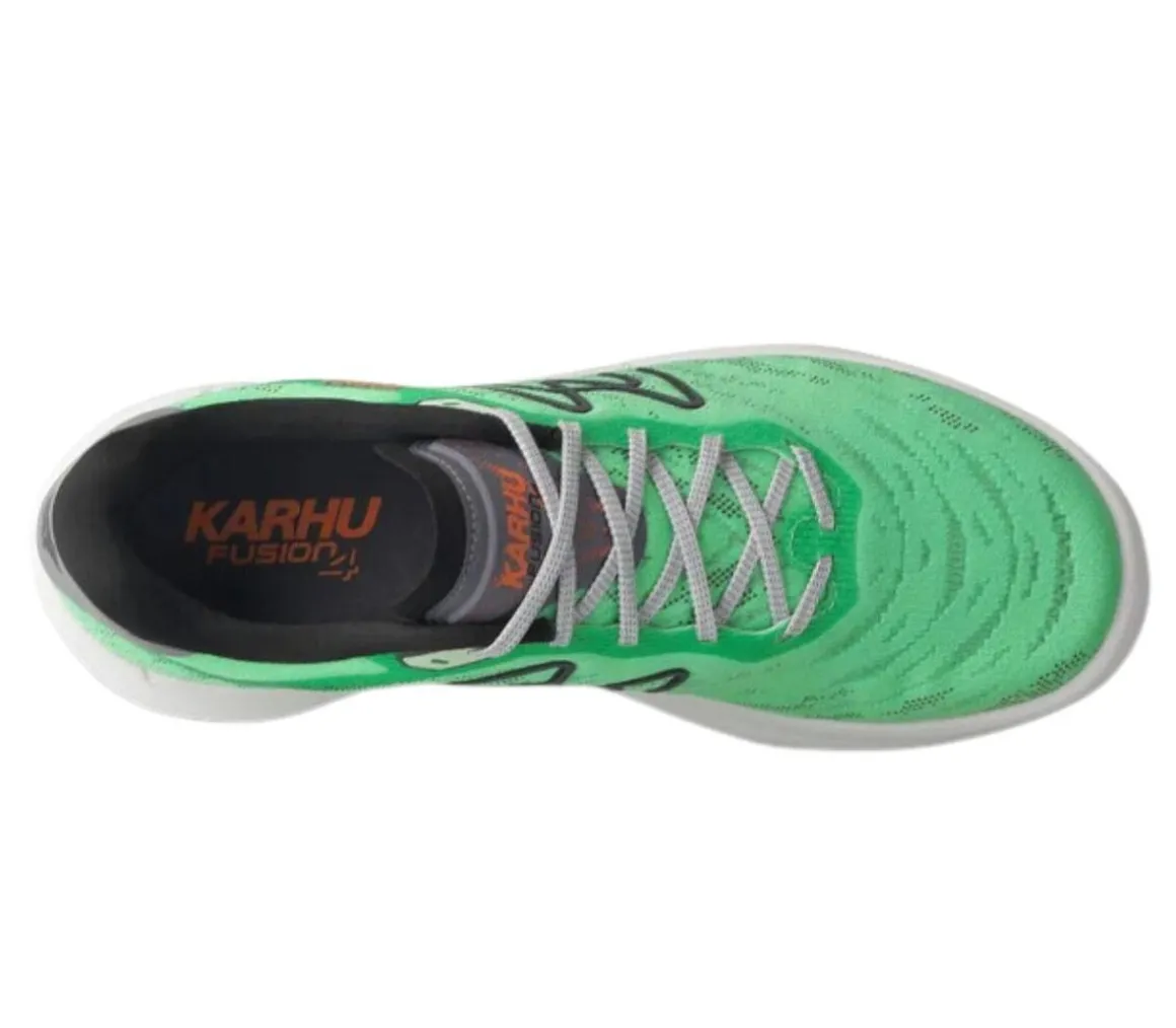 La Karhu Fusion 4.0 offre ottima ammortizzazione, grazie alla schiuma in azoto AeroFoam, e propulsione e grande velocità, grazie alla tecnologia Fulcrum+.