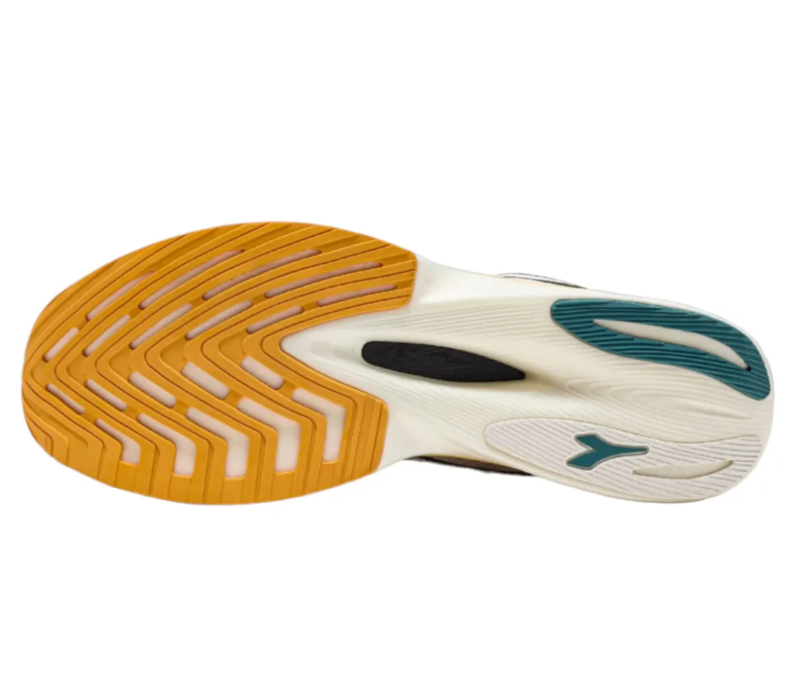 La Diadora Gara Carbon è progettata per superare i propri limiti di velocità, assicura reattività e grande rimbalzo, grazie all’unione della piastra in carbonio e l’intersuola Anima PBX.