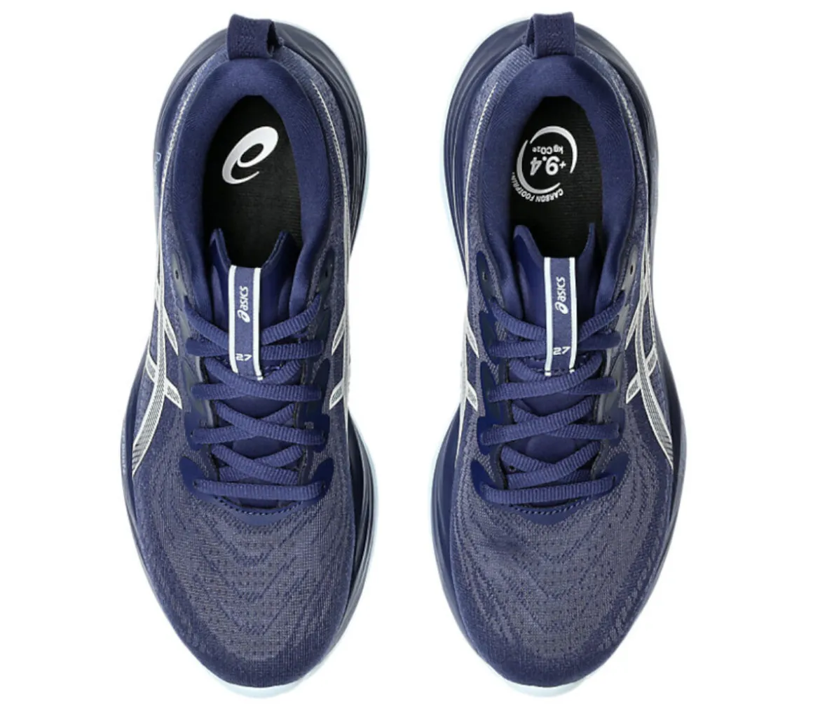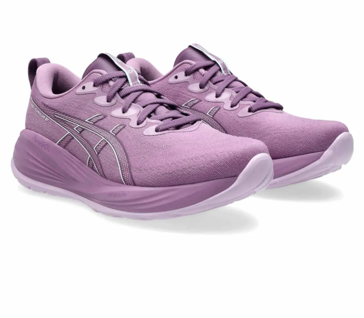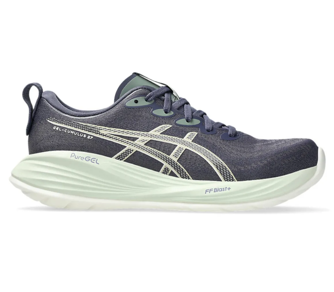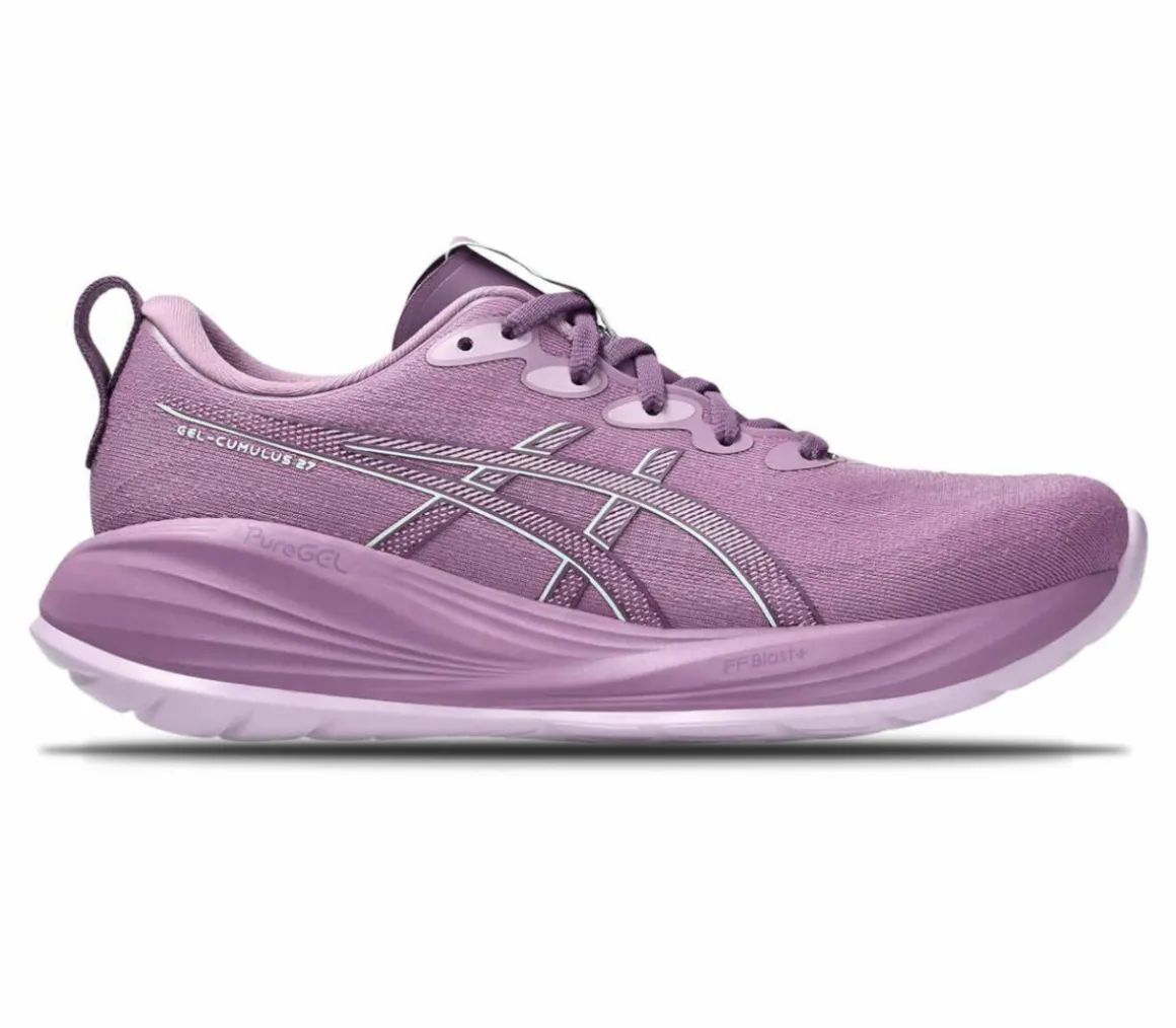 La Asics Gel-Cumulus 27 è una scarpa da running adatta alle runner che si allenano intensamente sulle lunghe distanze su asfalto, anche in estate, grazie alla comoda e ventilata tomaia in doppio jacquard mesh.