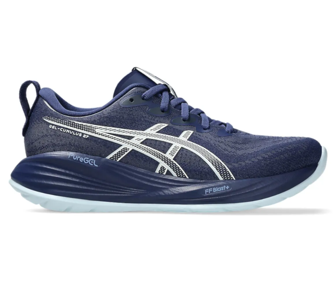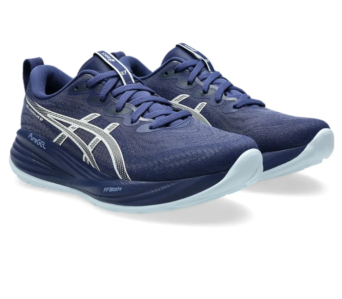 La Gel-Cumulus 27 è perfettamente ammortizzata, grazie alla mescola FF BLAST+, che restituisce velocità, propulsione e grande ritorno di energia per correre sulle lunghe distanze.