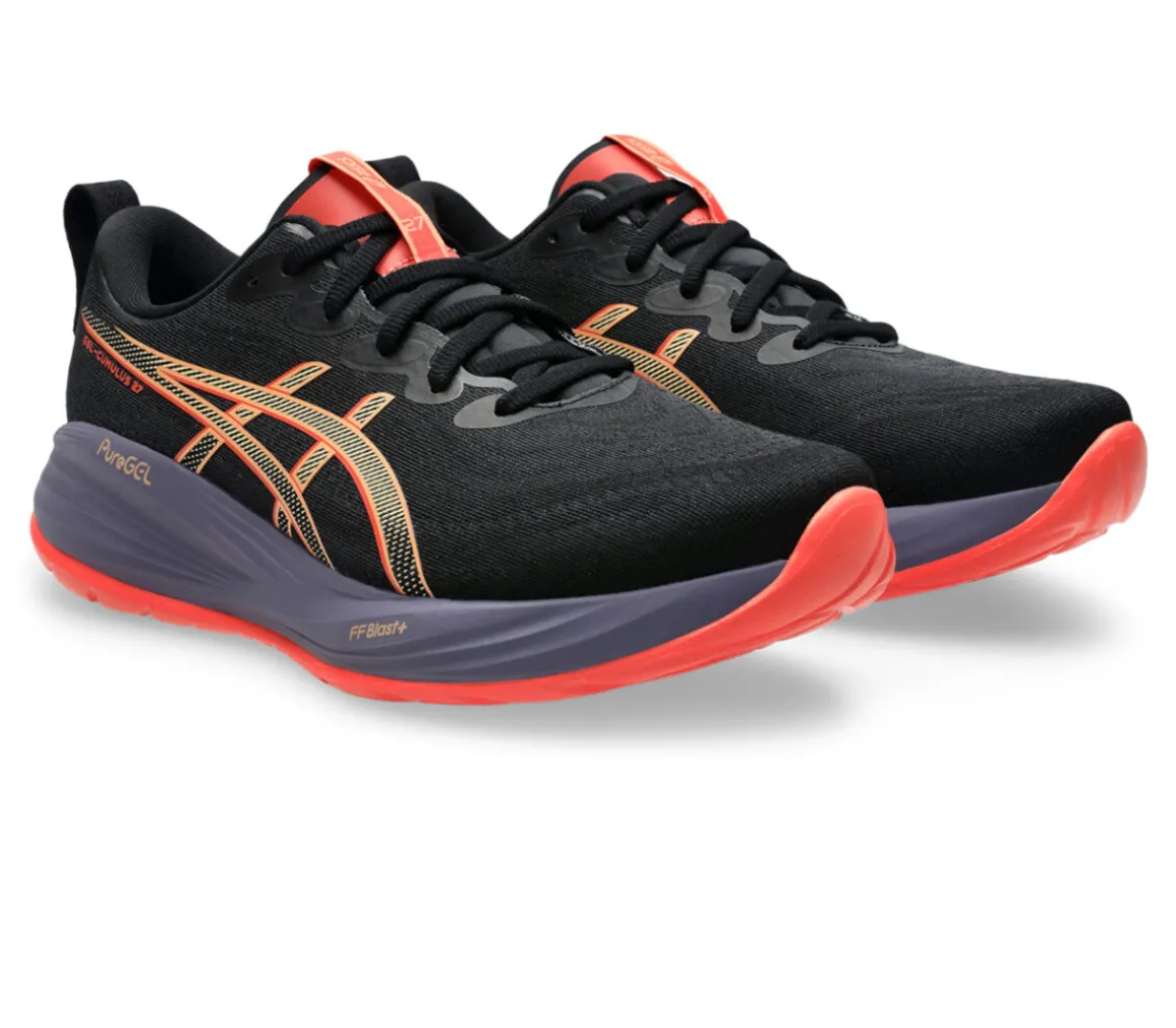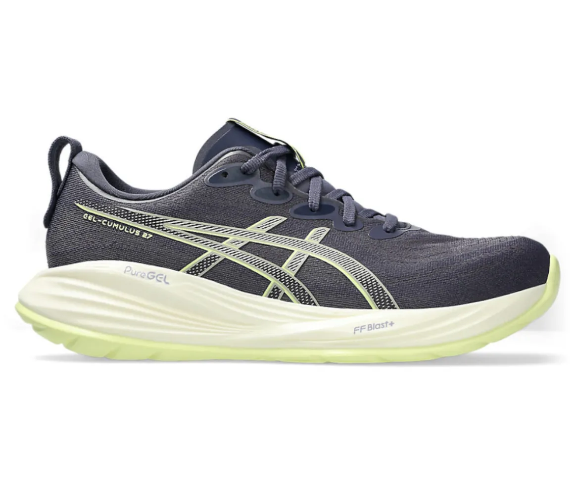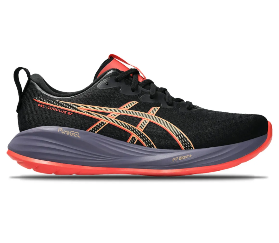 La Asics Gel-Cumulus 27 è una scarpa versatile che combina ottima ammortizzazione e velocità, grazie alla schiuma FF Blast+, e ottimo grip per correre su asfalto, grazie al battistrada FluidRide.