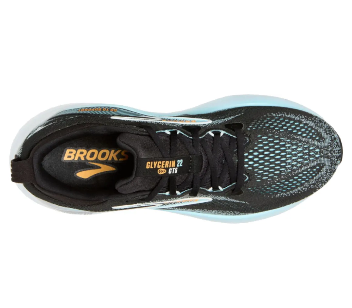 La Brooks Glycerin GTS 22 assicura un ottimo supporto per i runner pronatori, grazie al preciso controllo del movimento della tecnologia GuideRails, e grande comfort e reattività, grazie alla mescola DNA Tuned.
