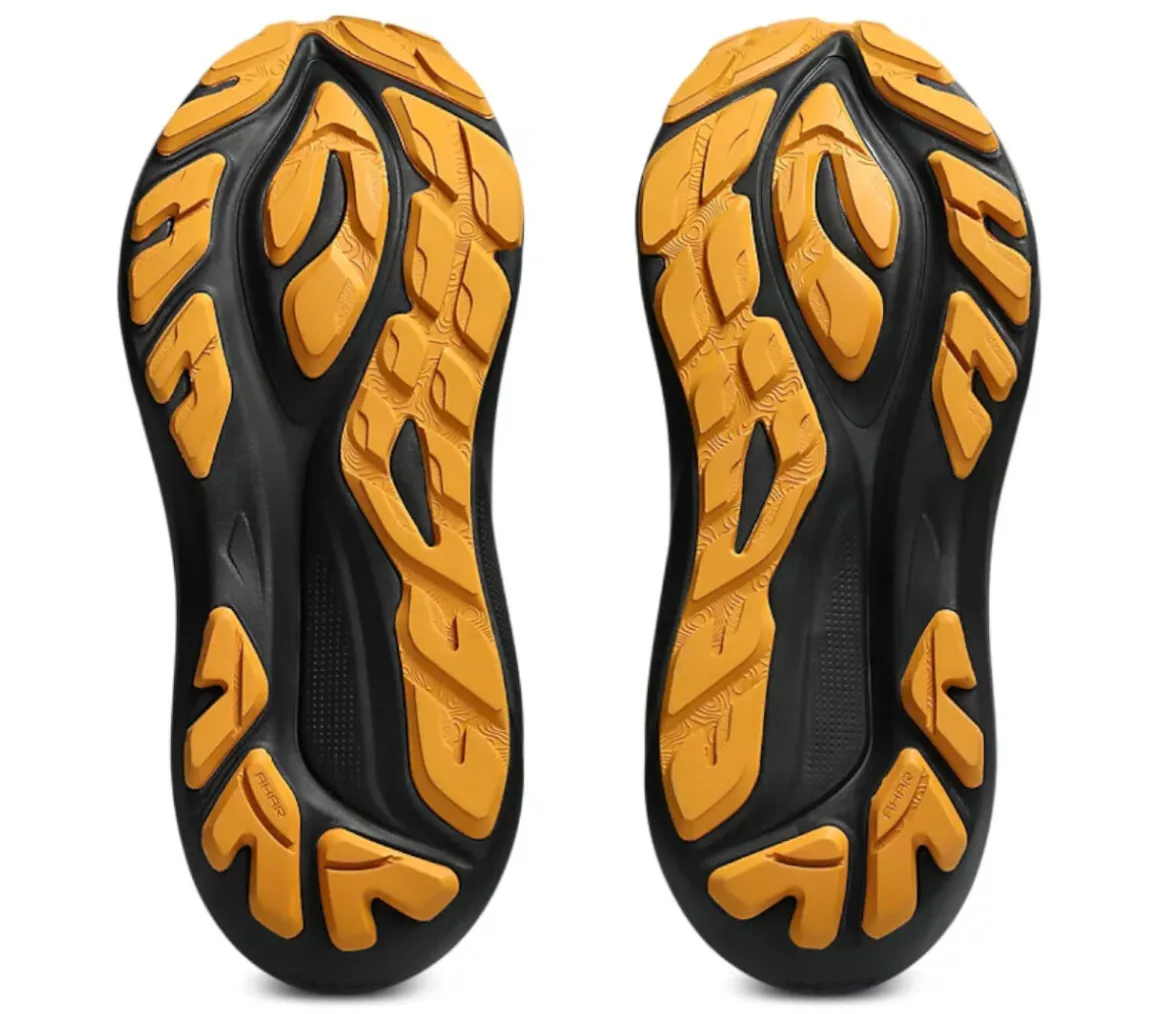 La suola in gomma presenta degli inserti in mescola AHAR LO, con un tassello posizionato nella zona del tallone, per garantire un’aderenza e una trazione perfetta per correre su asfalto e sterrato. La soletta Orthlo-Lite X-30, in più, aggiunge ulteriore ammortizzazione.