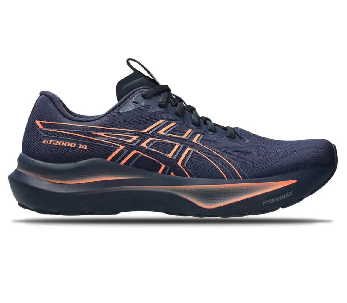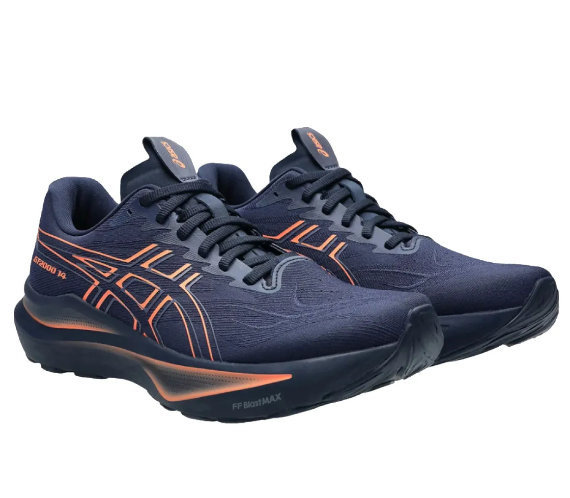 La Asics GT-2000 14 è energica, reattiva e ammortizzata, grazie alla schiuma morbida della mescola FF BLAST MAX e al cuscinetto, tra suola e intersuola, che genera un rimbalzo energico.
