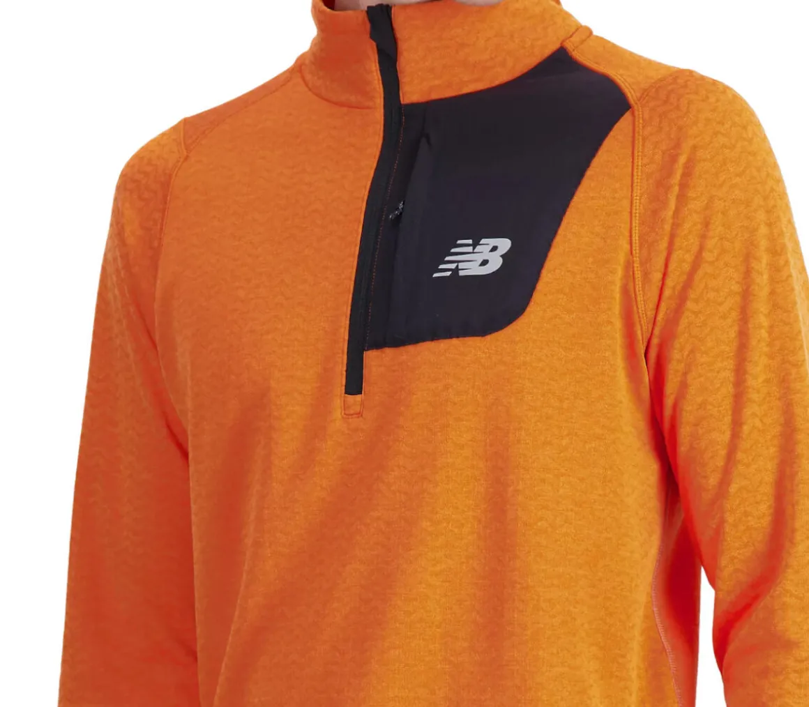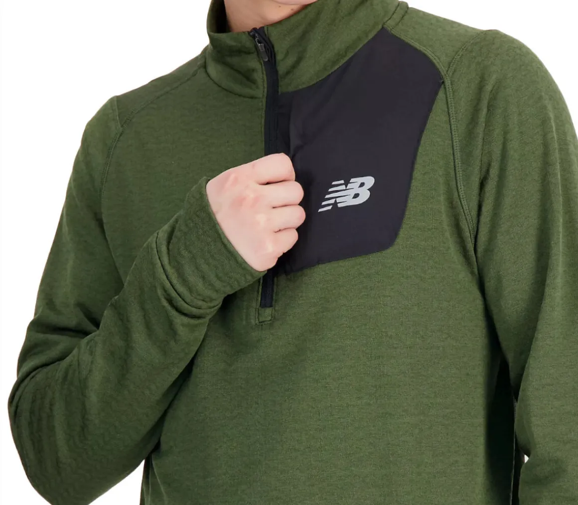 La felpa New Balance Heat Grid Half Zip da uomo mantiene il corpo al caldo durante gli allenamenti invernali, grazie alla tecnologia NB HEAT posta nel tessuto felpato.