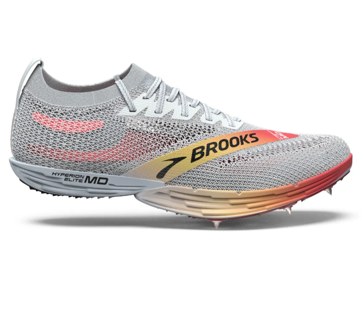 La Brooks Hyperion Elite MD è una scarpa da atletica leggera consigliata agli atleti che si allenano su pista da 800 a 1500 metri, grazie alla piastra SpeedVault Race ultraleggera in fibra di carbonio.