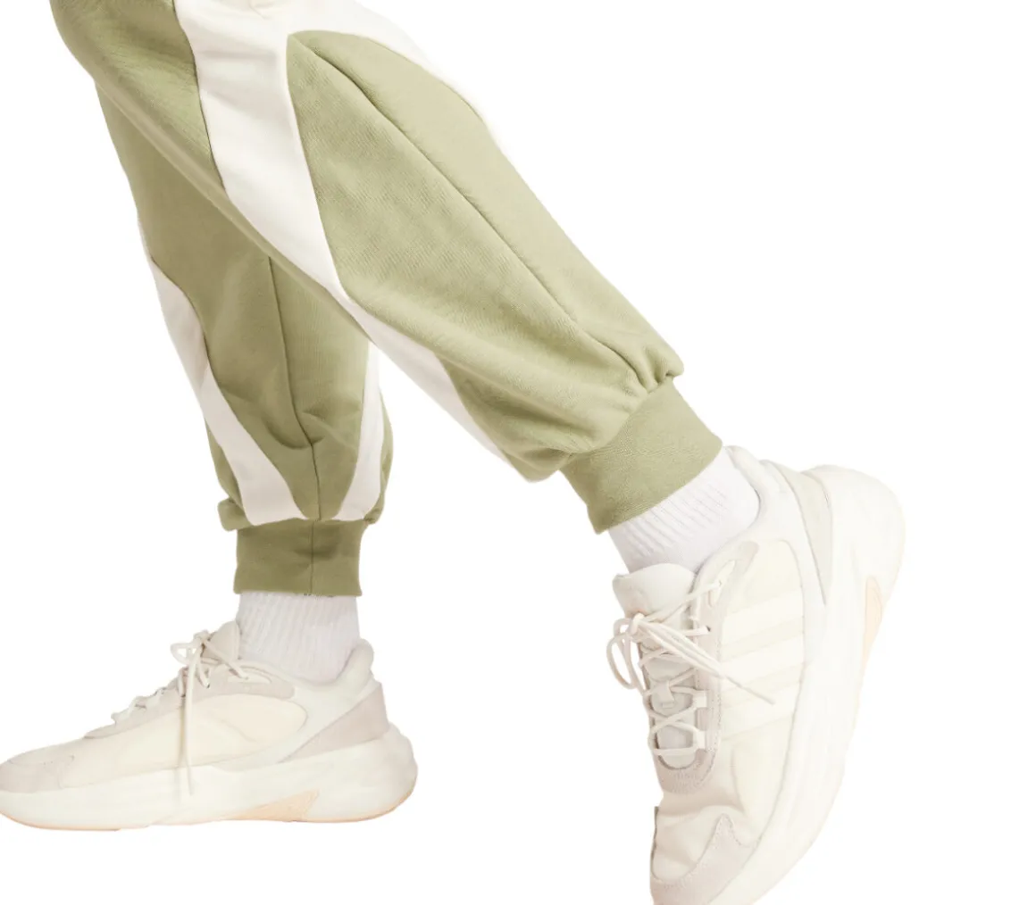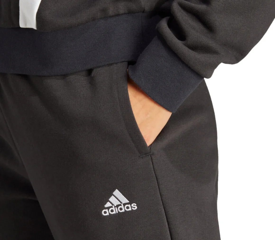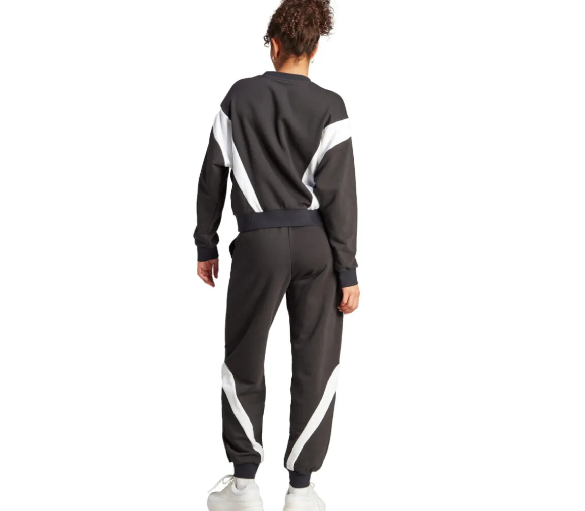 La tuta ha una vestibilità ampia, i pantaloni hanno una vestibilità regolare con tasche laterali e girovita elasticizzato. La felpa è girocollo e presenta i polsini a coste.