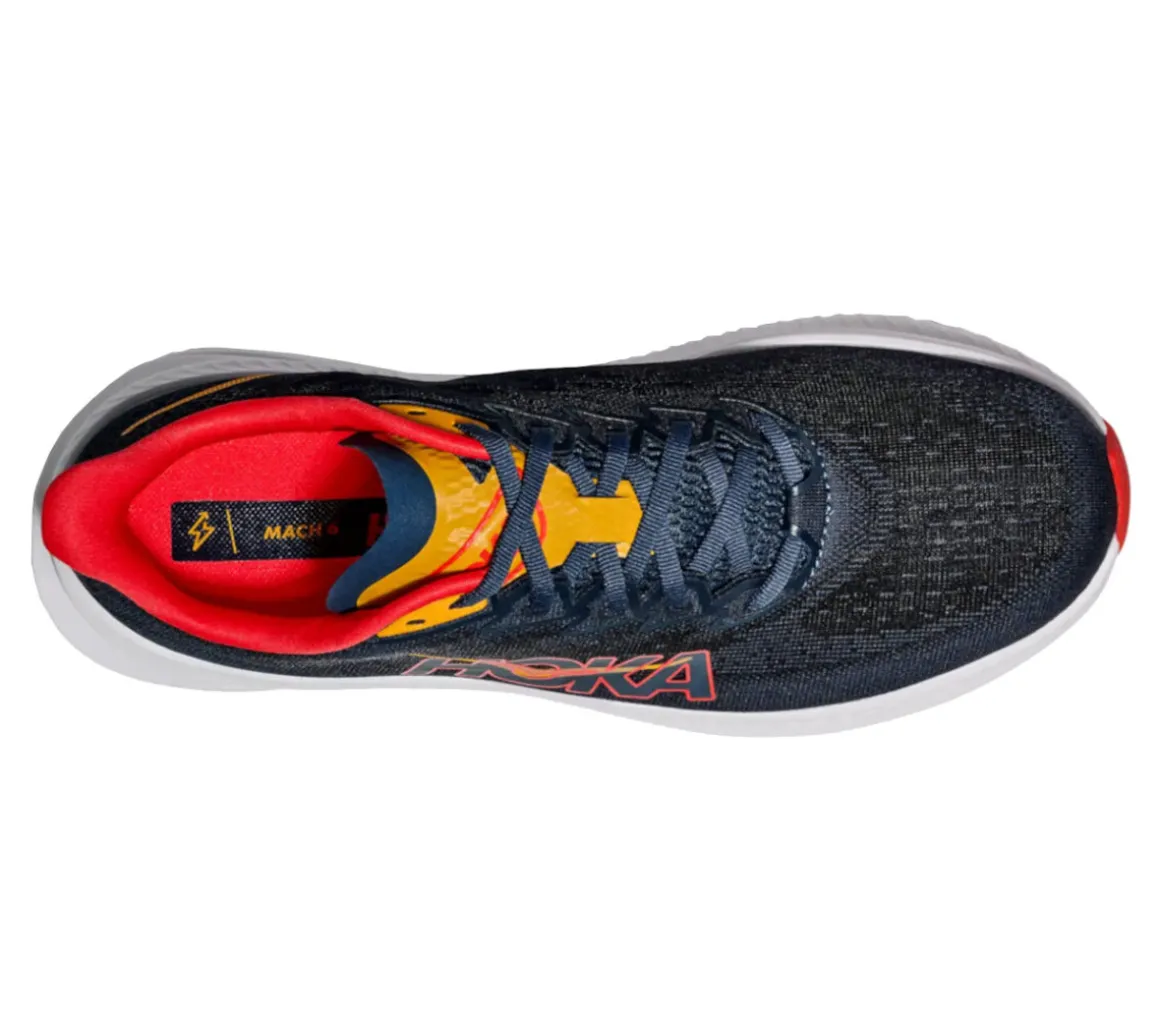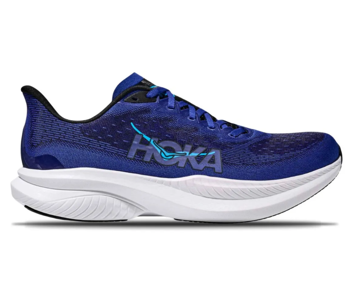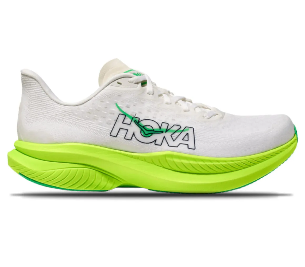 La Hoka Mach 6 è una scarpa leggera e reattiva, grazie all’intersuola in Eva e al MetaRocker, che assicurano supporto e velocità durante l’allenamento.