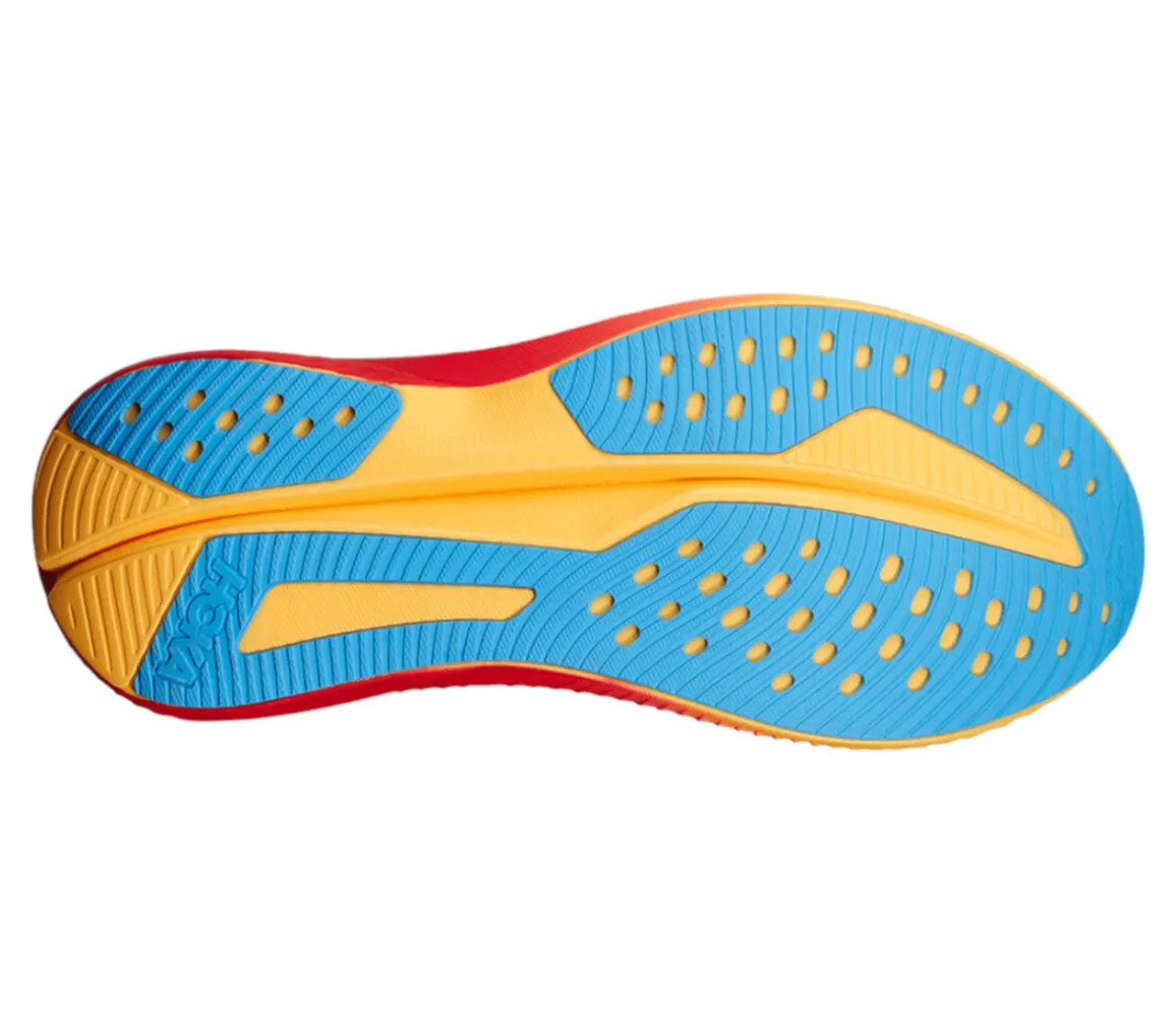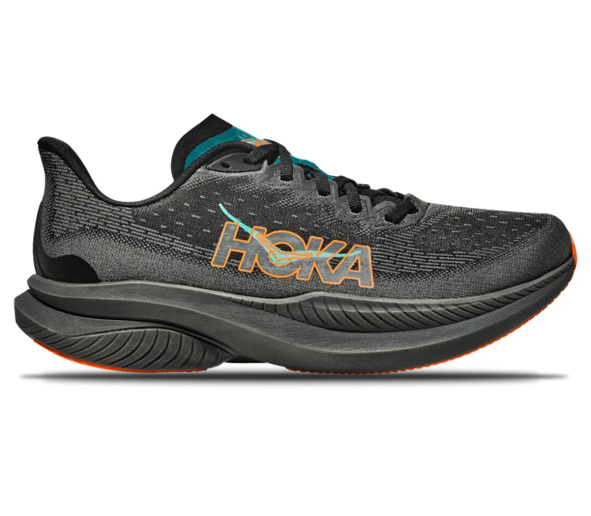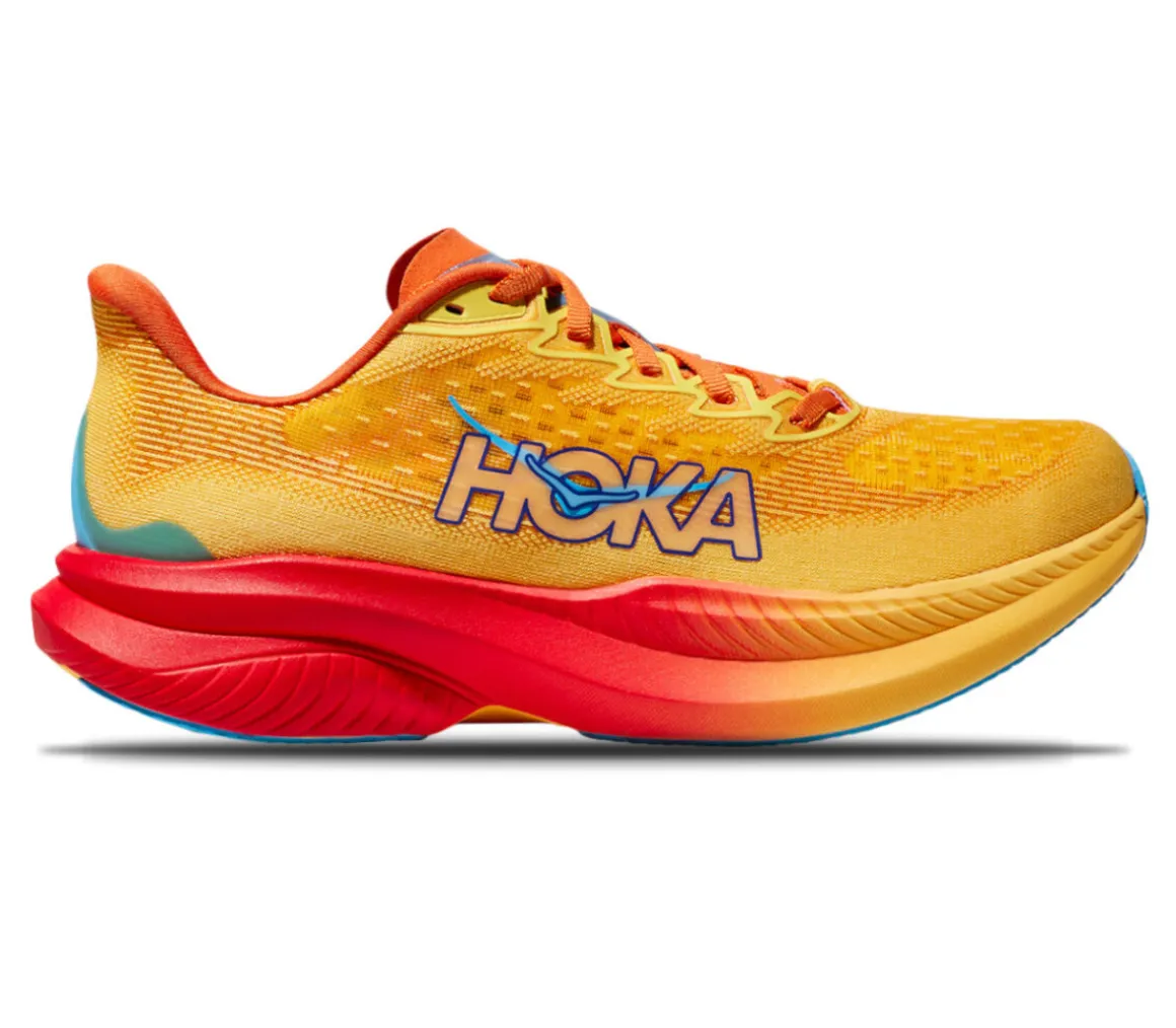 La Hoka Mach 6 è una scarpa leggera e reattiva, grazie all’intersuola in Eva e al MetaRocker, che assicurano supporto e velocità durante l’allenamento.