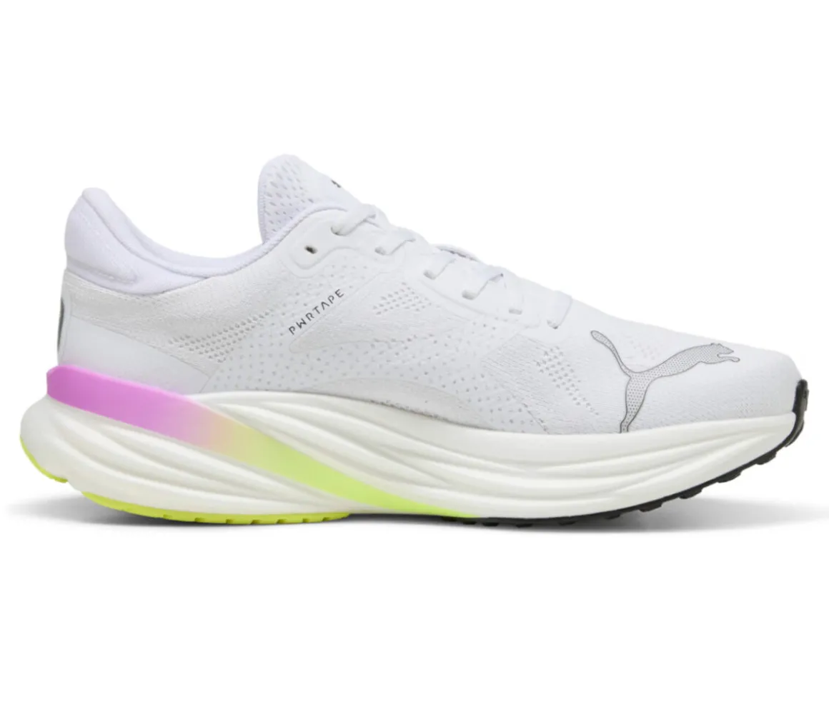 La Puma Magnify Nitro 2 è una scarpa da running ideale per i runner che si allenano sulle lunghe distanze su asfalto, è morbida e confortevole grazie alla schiuma NitroFoam.