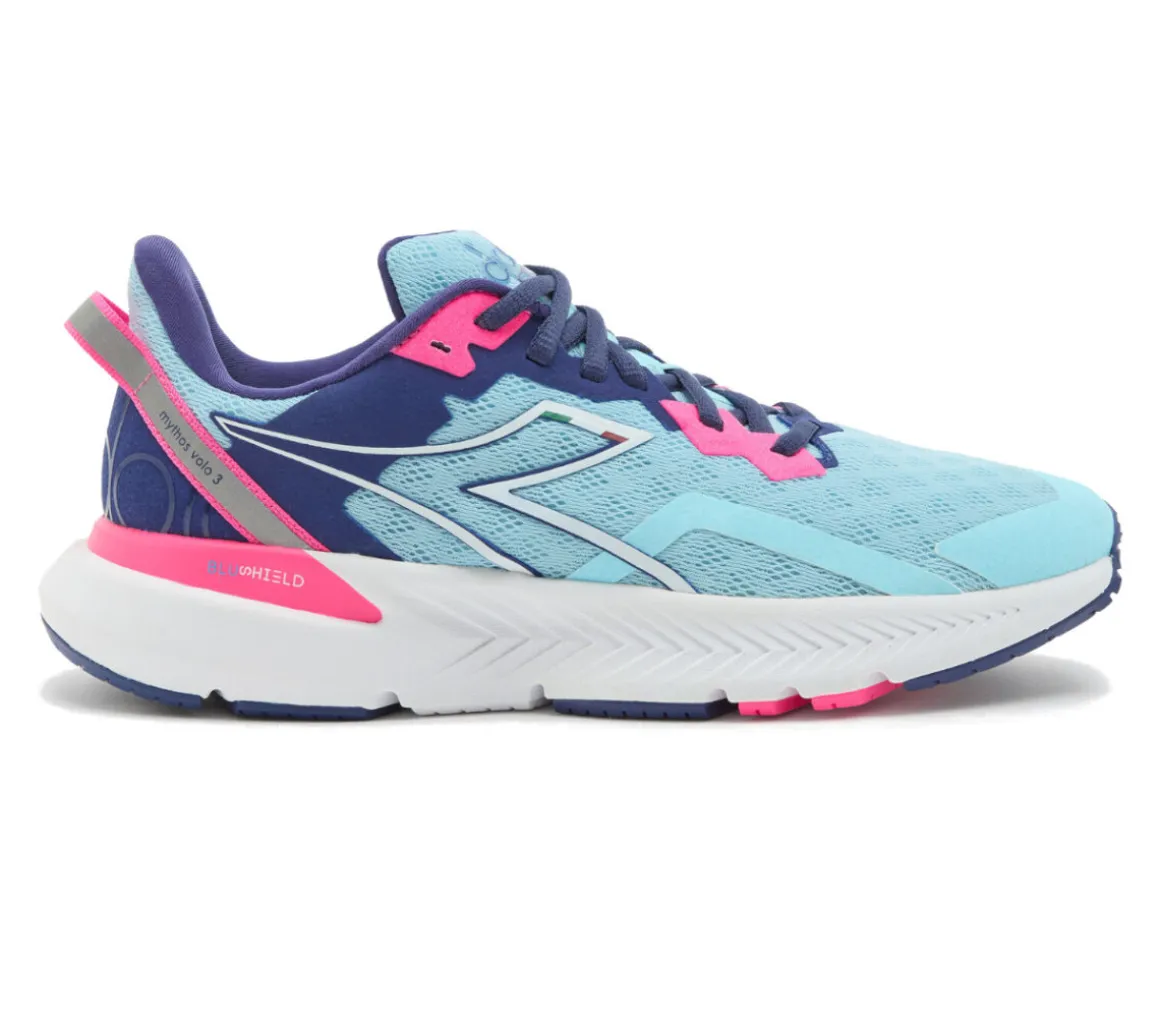 La Diadora Mythos Blushield Volo 3 è una scarpa da running perfetta per le runner che si allenano intensamente sulle lunghe distanze grazie alla morbidezza dell’intersuola DD Anima.