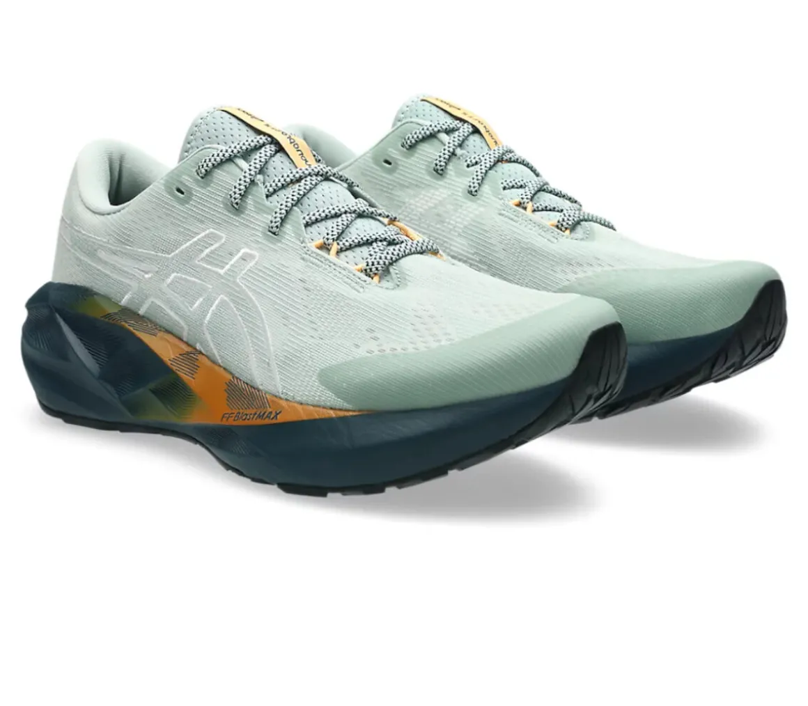 La Asics Novablast 5 TR è versatile per allenarsi quotidianamente su asfalto e sentiero battuto, grazie al cushioning e all’energia della schiuma FF Blast Max e al grip del battistrada versione TR.