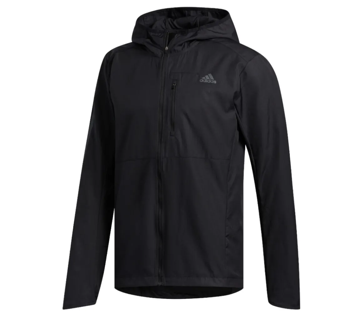Giacca a vento per il running Adidas Own The Run idrorepellente e con cappuccio, perfetta per gli allenamenti con pioggia e vento. La giacca ha un apertura con zip frontale e una tasca sul petto. L’interno della tasca è realizzata in tessuto anti umidità, per proteggere alla perfezione lo smartphone anche sotto la pioggia.