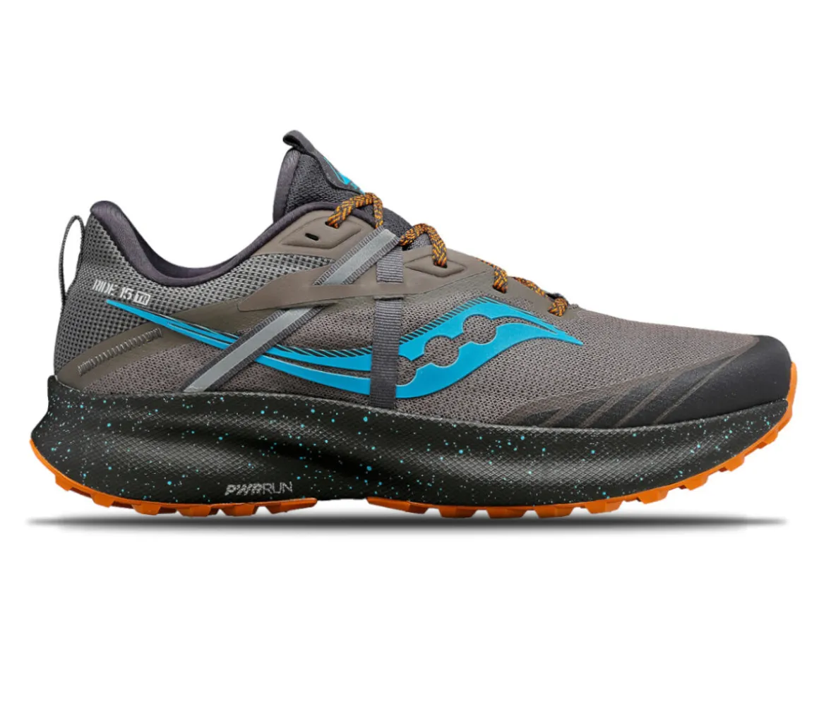 La Saucony Ride 15 TR è una scarpa da running perfetta per i runner che corrono su sentiero e su asfalto grazie alla trazione della suola in POWERTRAC.