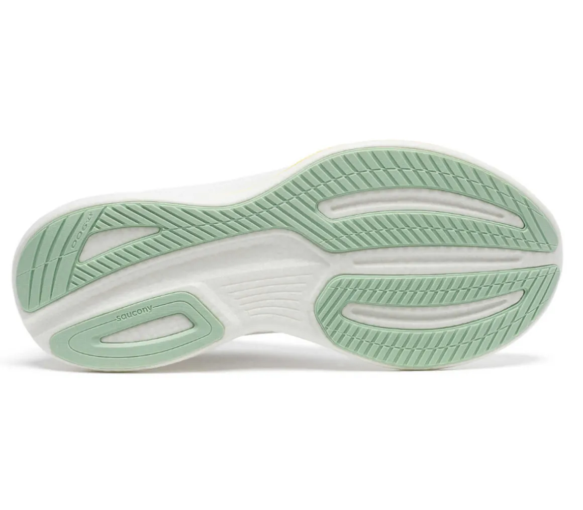 La suola in gomma si adatta alla forma del piede della runner ed ha un battistrada disegnato per correre su asfalto, grazie all’ottimo grip.