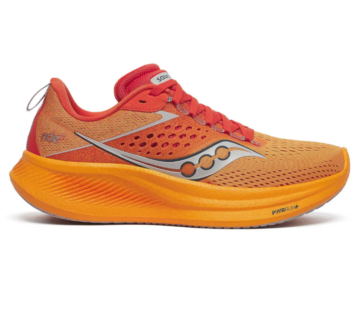La Saucony Ride 17 è perfetta per chi si allena quotidianamente sulle lunghe distanze, grazie alla reattività e al ritorno di energia dell’intersuola PWRRUN+.
