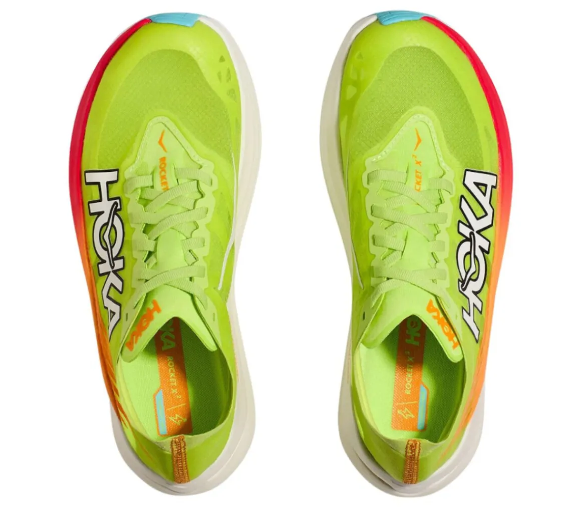 Le Hoka Rocket X 2 sono scarpe unisex pensate per gareggiare su lunga distanza a passo veloce. Perfette anche per tutti gli allenamenti veloci sulla lunga distanza in preparazione di maratona e mezza maratona.