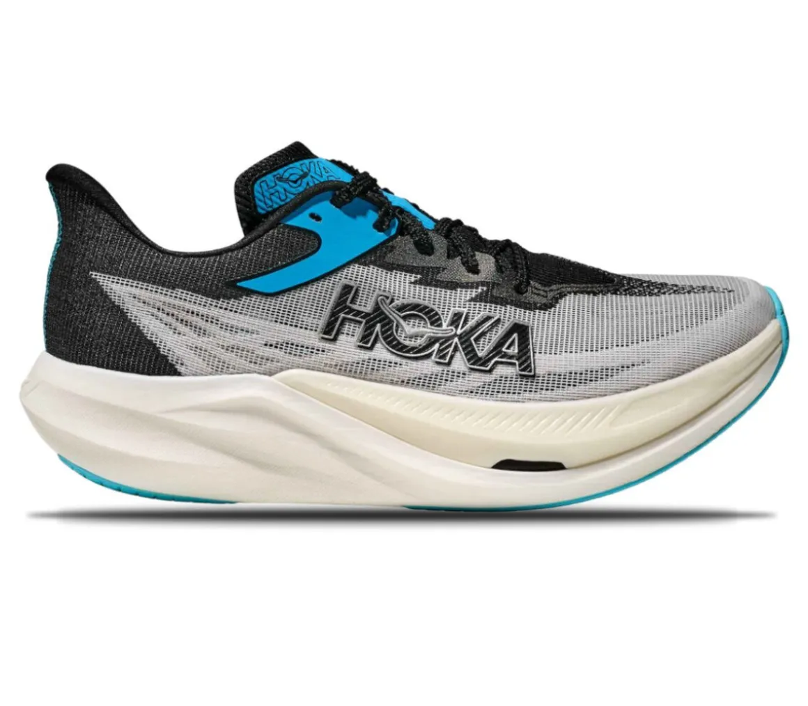 La Hoka Rocket X 3 è una scarpa versatile per correre e competere sulle lunghe distanze, come la maratona e la mezza maratona, grazie alla propulsione e alla stabilità offerte dalla piastra in carbonio.