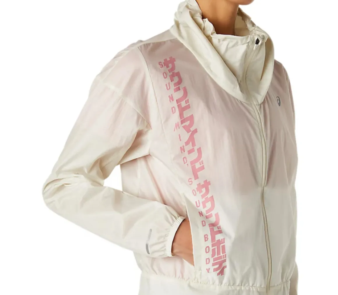 La Asics Run Jacket è una giacca a vento impermeabile da donna studiata appositamente per la corsa. Sulle maniche e sul petto sono presenti dettagli riflettenti che aumentano la visibilità. La grafica di questa giacca si ispira al Giappone e al periodo di fioritura dei ciliegi.