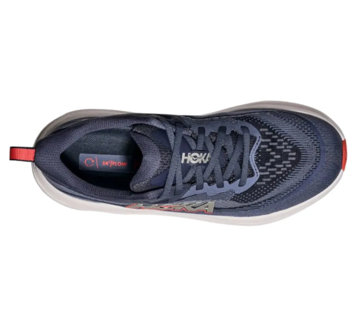 La Hoka Skyflow offre cushioning e stabilità, date dall’intersuola SCF EVA, e dal metarocker sul collo del piede che assicura falcate agili per le corse quotidiane.
