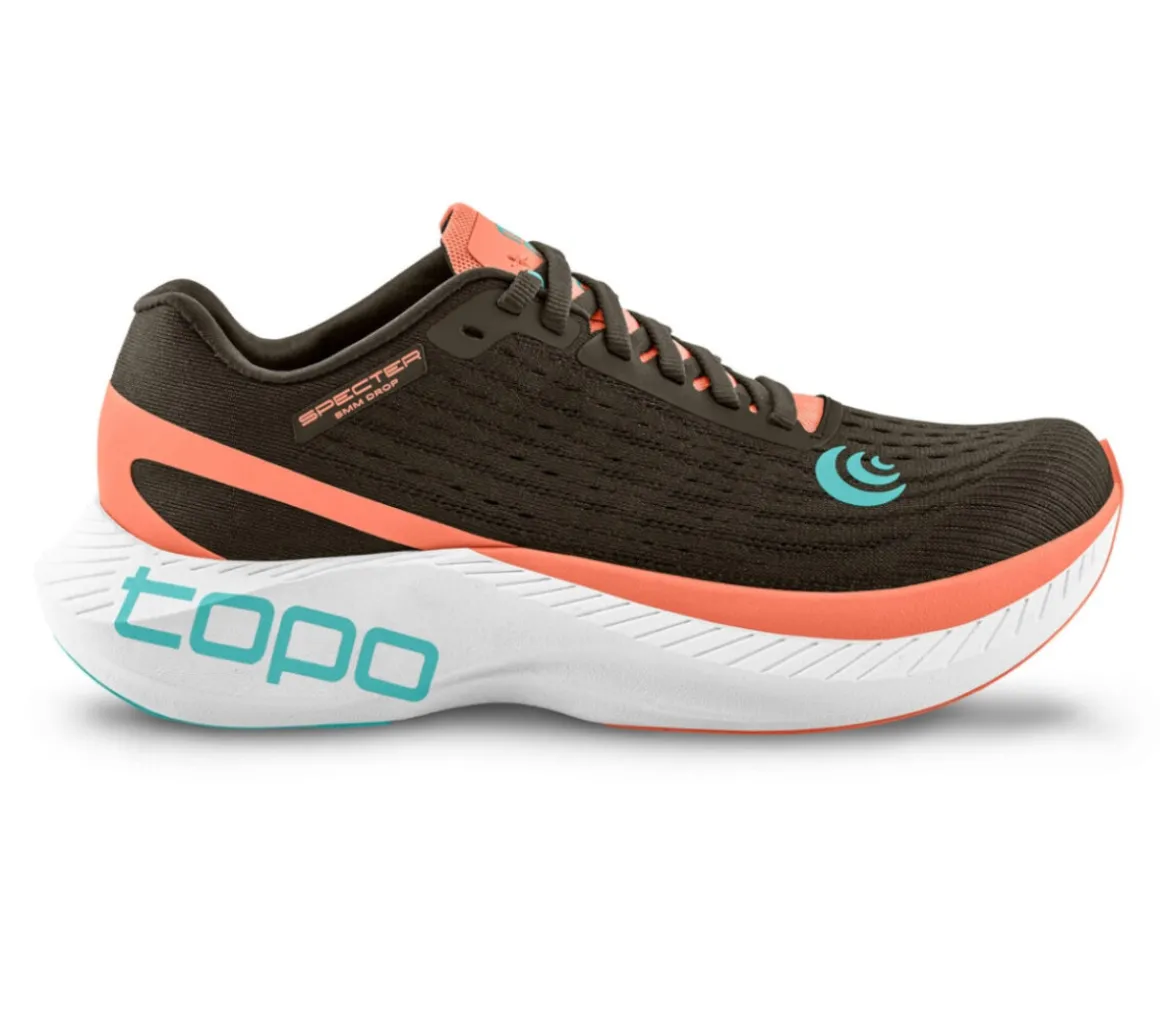 Le Topo Specter hanno un cushioning eccellente e un ritorno di energia propulsivo grazie alla piastra Pebax per percorrere le lunghe distanze con reattività.