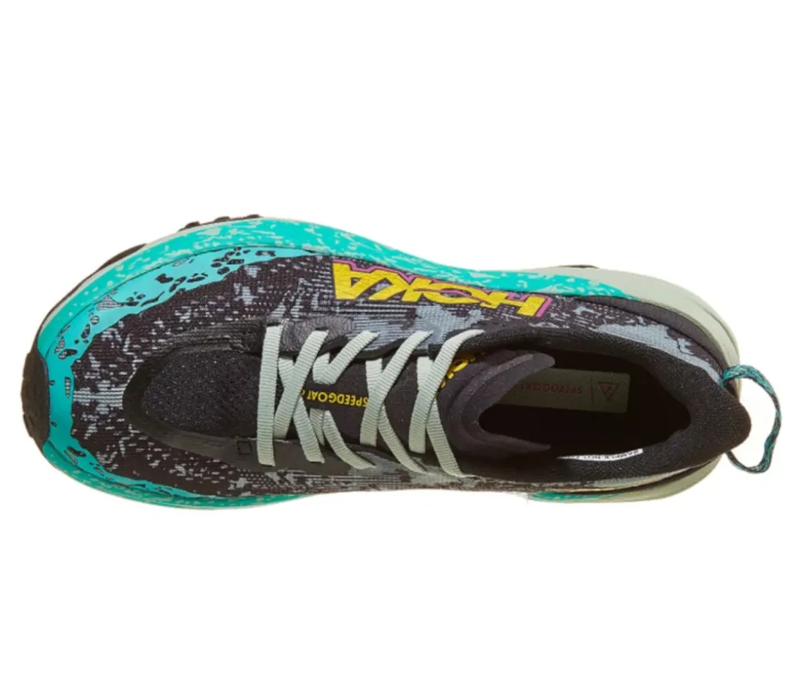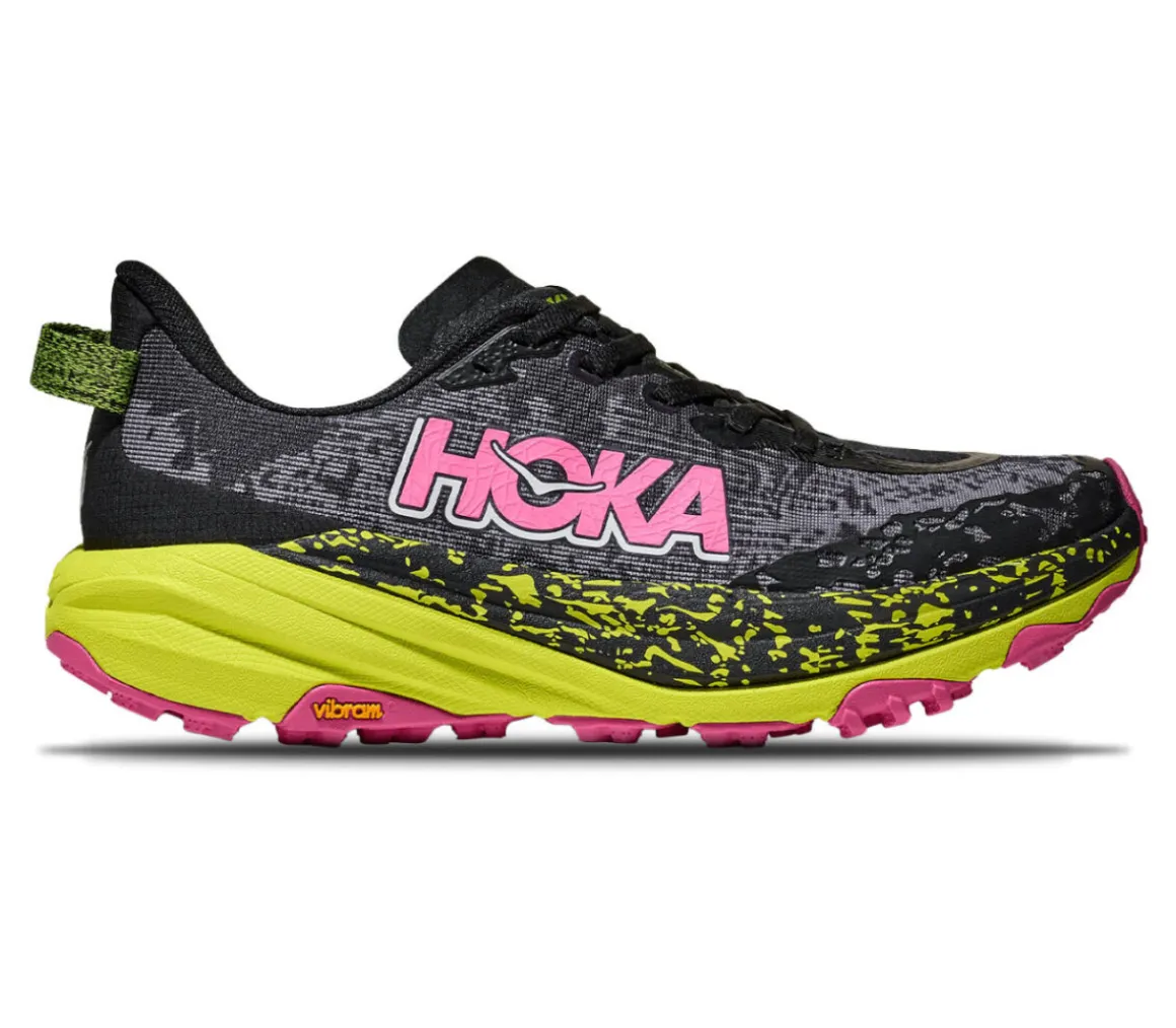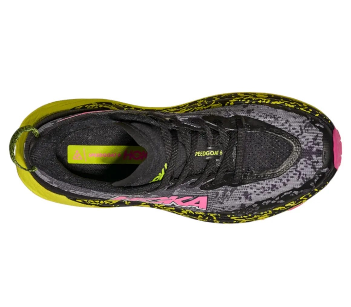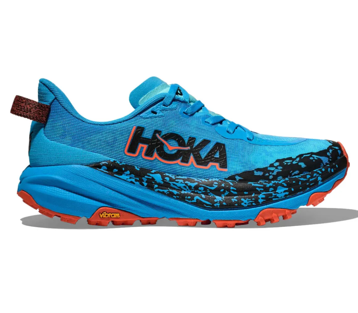 La Hoka Speedgoat 6 è una scarpa leggera e sicura per affrontare i trail tecnici, grazie alla spinta reattiva dell’intersuola Cmeva e il supporto e la protezione della suola in Vibram Megagrip.