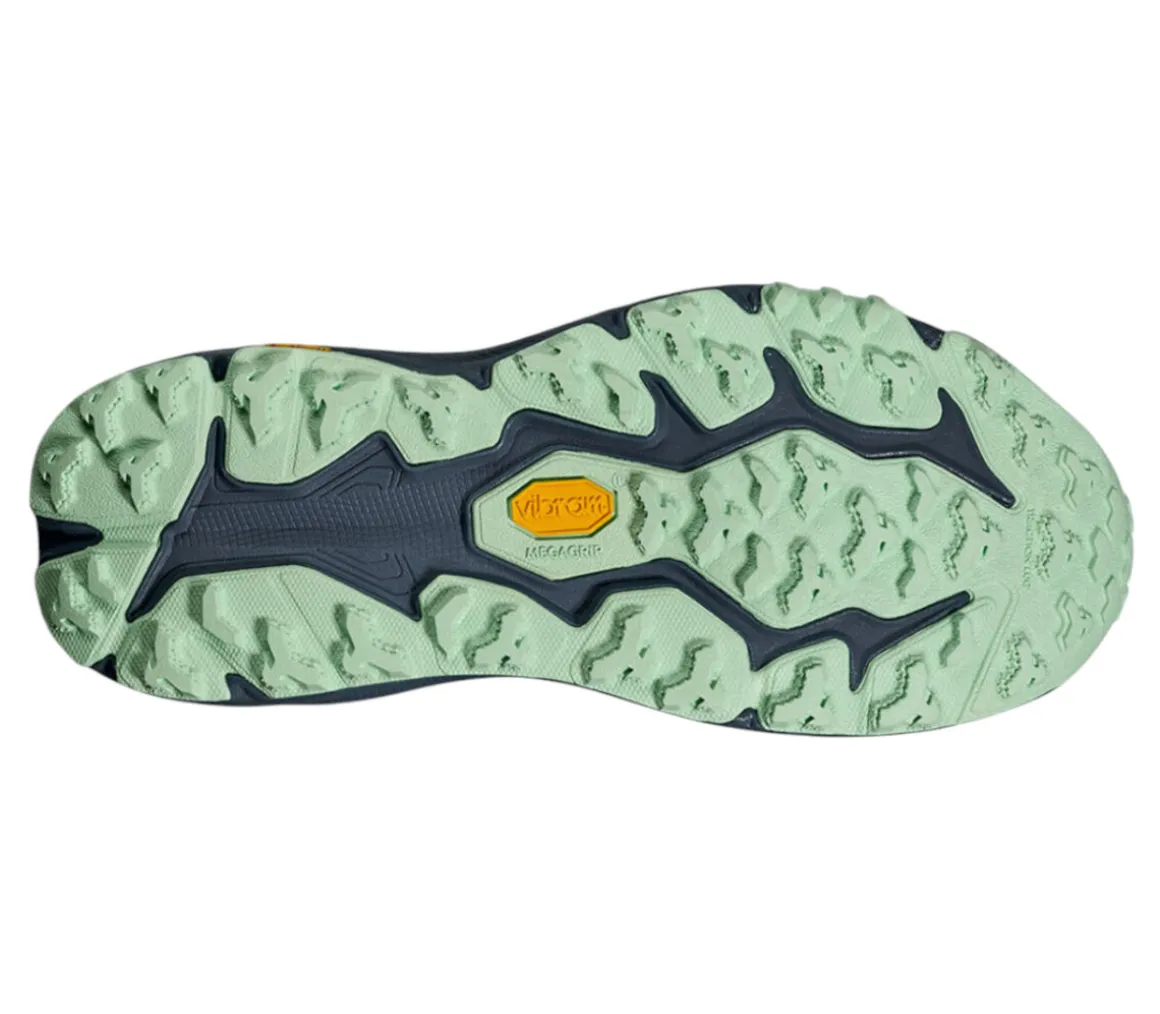 La suola in Vibram Megagrip presenta una tacchettatura Traction Lug da 5 mm che assicura ottima trazione su diverse tipologie di terreno e un buon grip.
