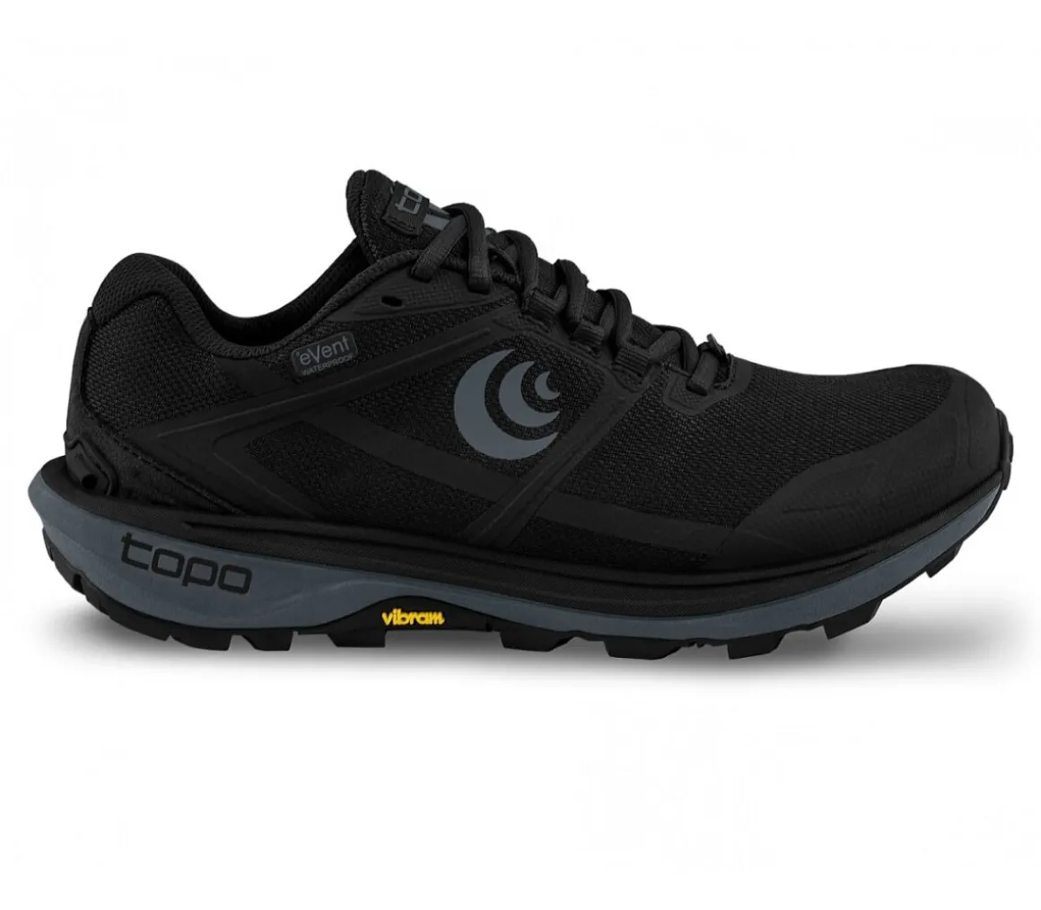 La Topo Terraventure 4 WP è una scarpa da trail running ideale per correre i trail su sentieri tecnici e rocciosi, anche sul bagnato, grazie all’impermeabilità della tomaia Event.