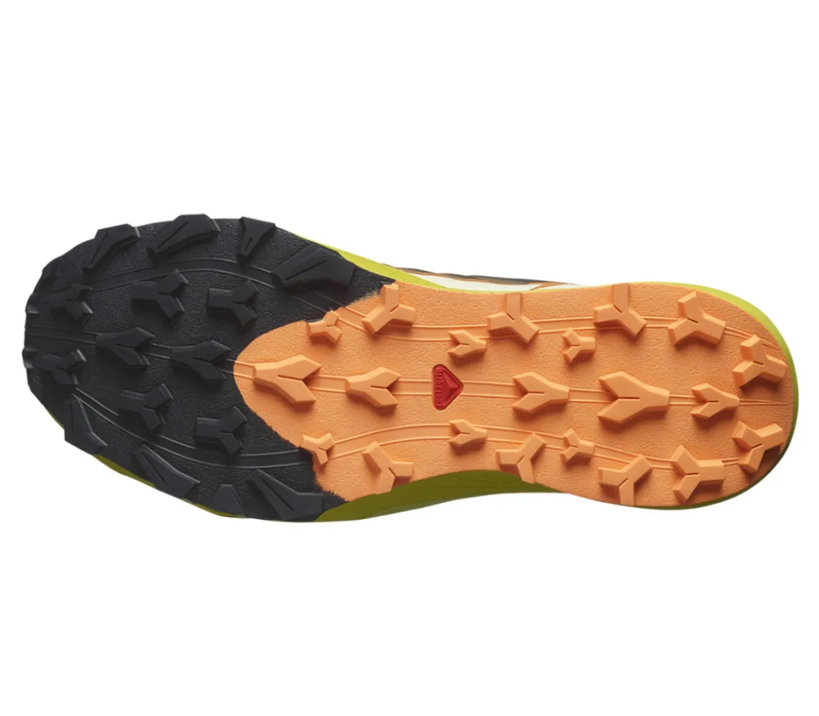 La Salomon Thundercross è una scarpa da trail running ideale per affrontare i trail più tecnici su terreni rocciosi e fangosi, grazie al grip dei tasselli da 5 mm della suola.