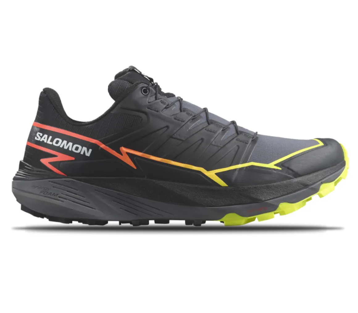 La Salomon Thundercross è realizzata per affrontare i trail su superfici insidiose e sdrucciolevoli, grazie alla grande ammortizzazione della schiuma Energy Foam e alla suola che offre grip e trazione.