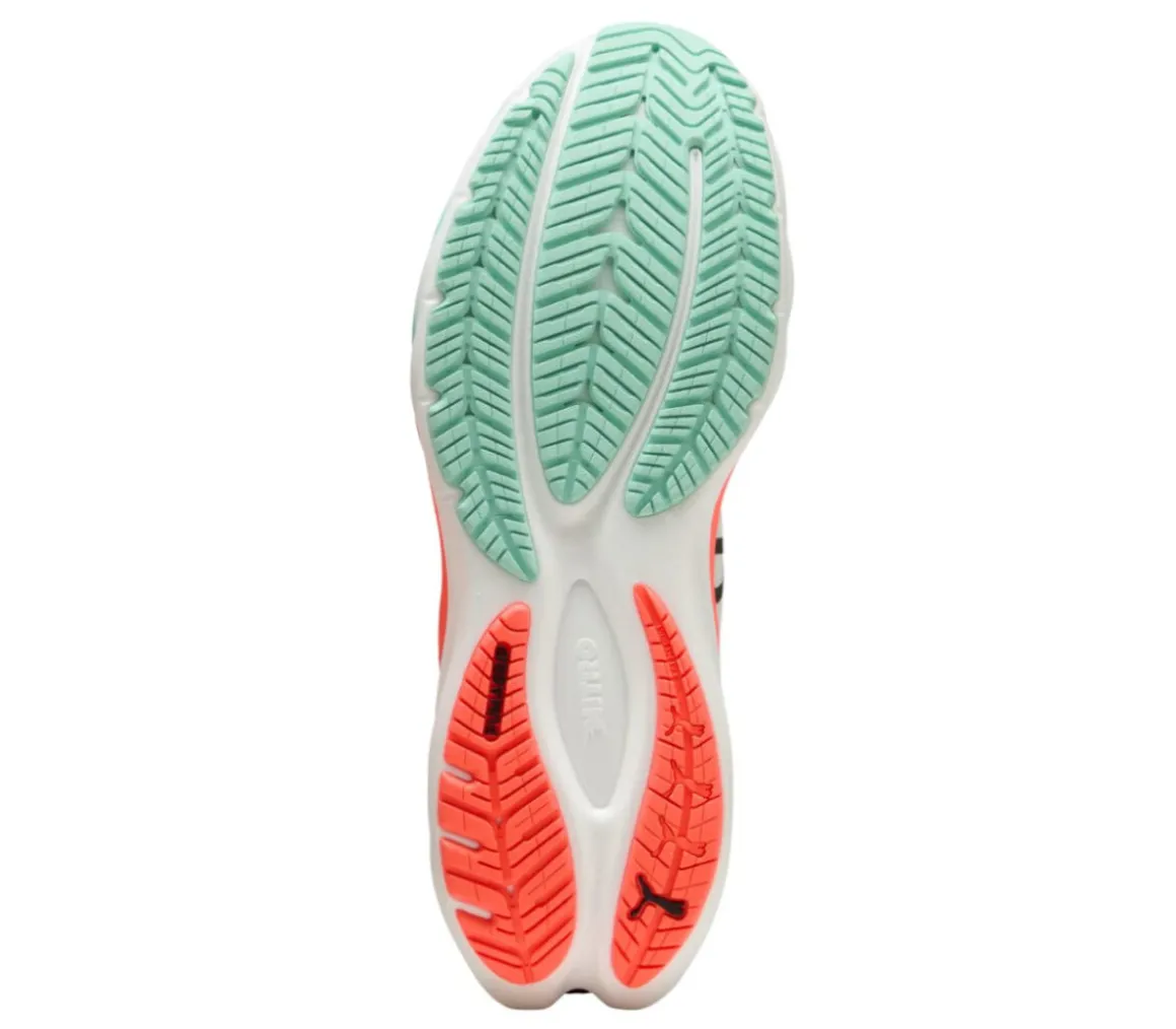 La suola in gomma PumaGrip offre ottimo grip e trazione sulle diverse superfici di gara: da quelle lisce, come il cemento e la resina per i burpees, a quelle morbide e gommose, per gli affondi con pesi e i Farmer’s Carry.