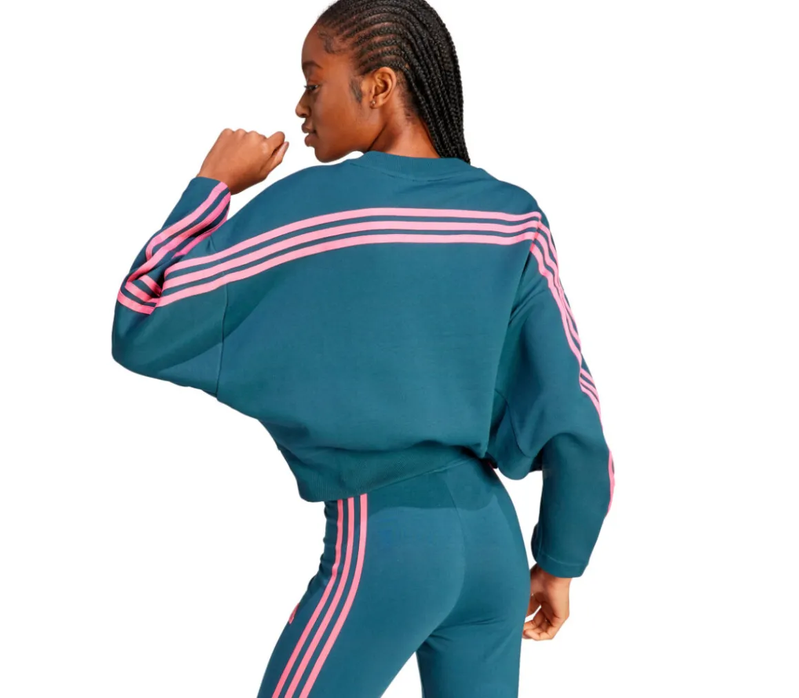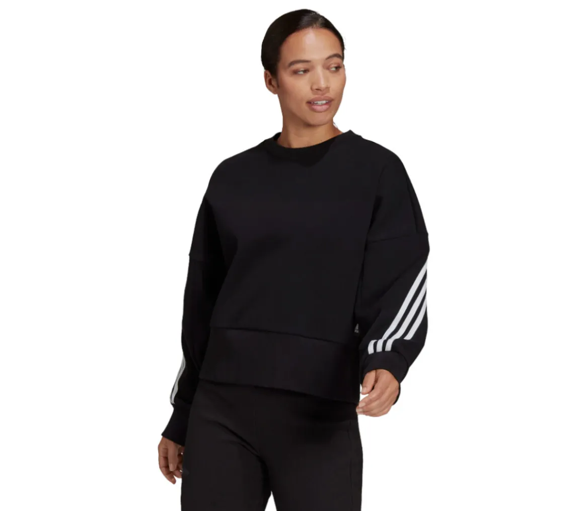Felpa sportiva da donna Adidas W FI 3S Crew, realizzata in morbido tessuto doppio filato e con fit oversize, per il massimo comfort per l’attività sportiva e il tempo libero. Girocollo, polsini e fondo sono a coste assicurano un fit perfetto del capo.