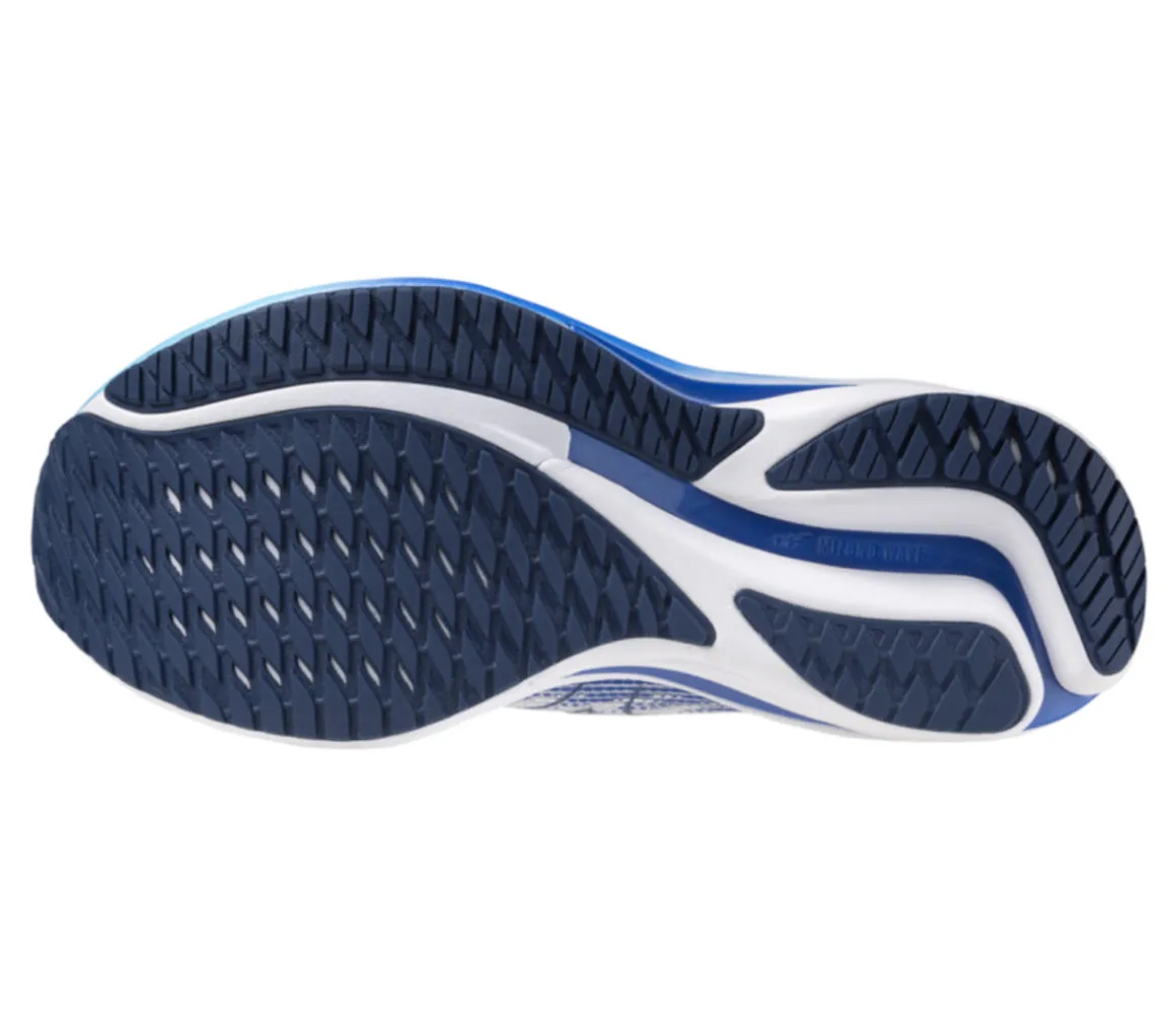 La Mizuno Wave Rider 28 offre grande ammortizzazione nella zona tallonare, grazie all’intersuola Mizuno Enerzy Nxt, e comfort e agilità nella zona dell’avampiede data dalla piattaforma Wave Plate, morbida e reattiva.