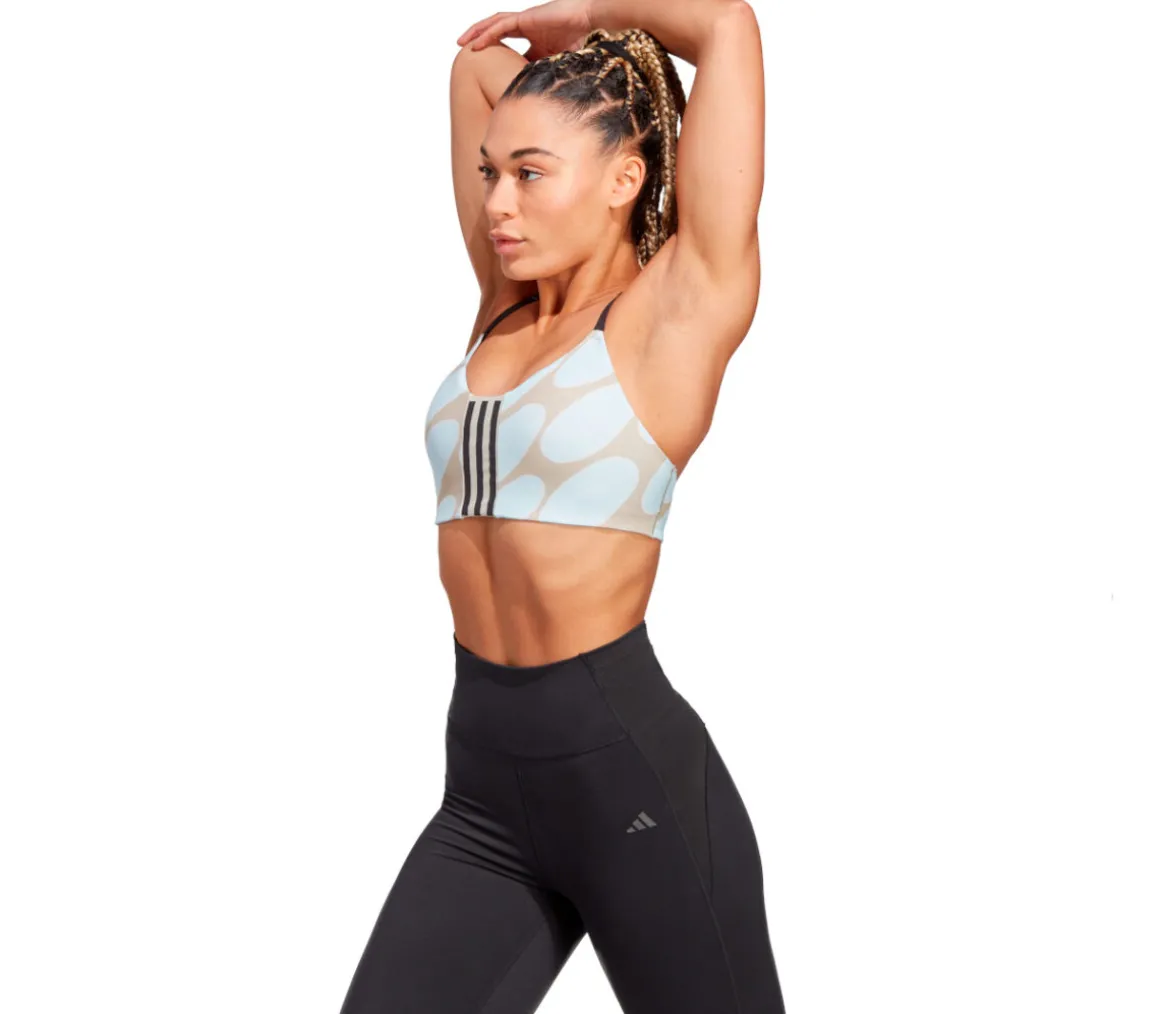 Il reggiseno sportivo Adidas X Marimekko Aeroimpact da donna offre ottimo supporto per la corsa, gli esercizi alla sbarra, lo yoga e il Pilates, la presenza della tecnologia AEROREADY consente la ventilazione ottimale.