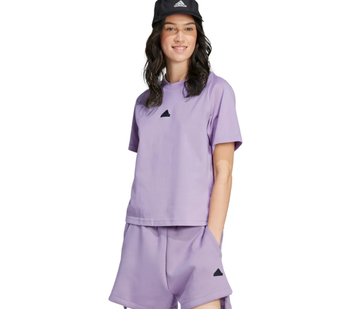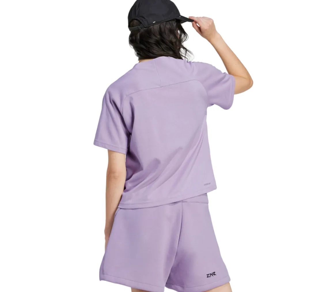 La t-shirt Adidas Z.N.E. Tee da donna è realizzata in misto cotone per offrire una sensazione di morbidezza assoluta a contatto con la pelle; il logo ha un design opaco.