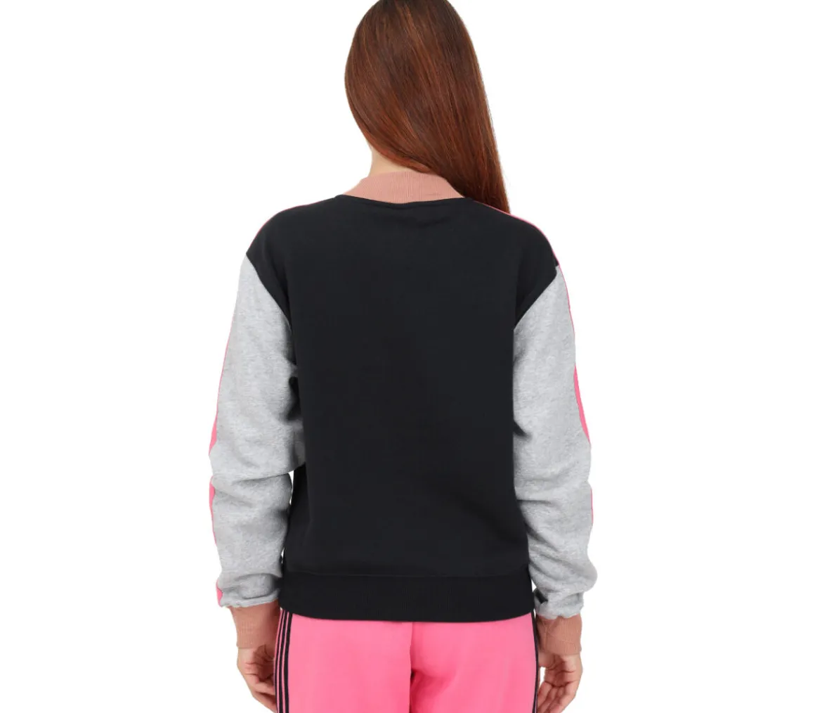 La felpa ha uno scollo tondo e le maniche lunghe, mentre i polsini e l’orlo sono a coste. Sono presenti le iconiche tre strisce lungo le maniche.