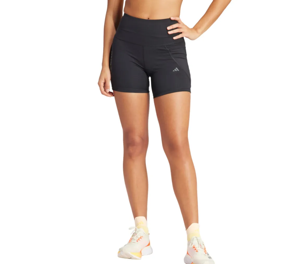 Il leggings corto Adidas Adizero 5inch Lite da donna ha un tessuto che incorpora la tecnologia AEROREADY, per mantenere la pelle asciutta per tutta la corsa.