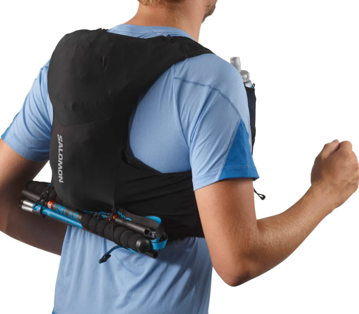 Lo zaino da trail running Salomon Adv Skin 5 è studiato per portare con te ogni accessorio durante allenamenti e gare trail.