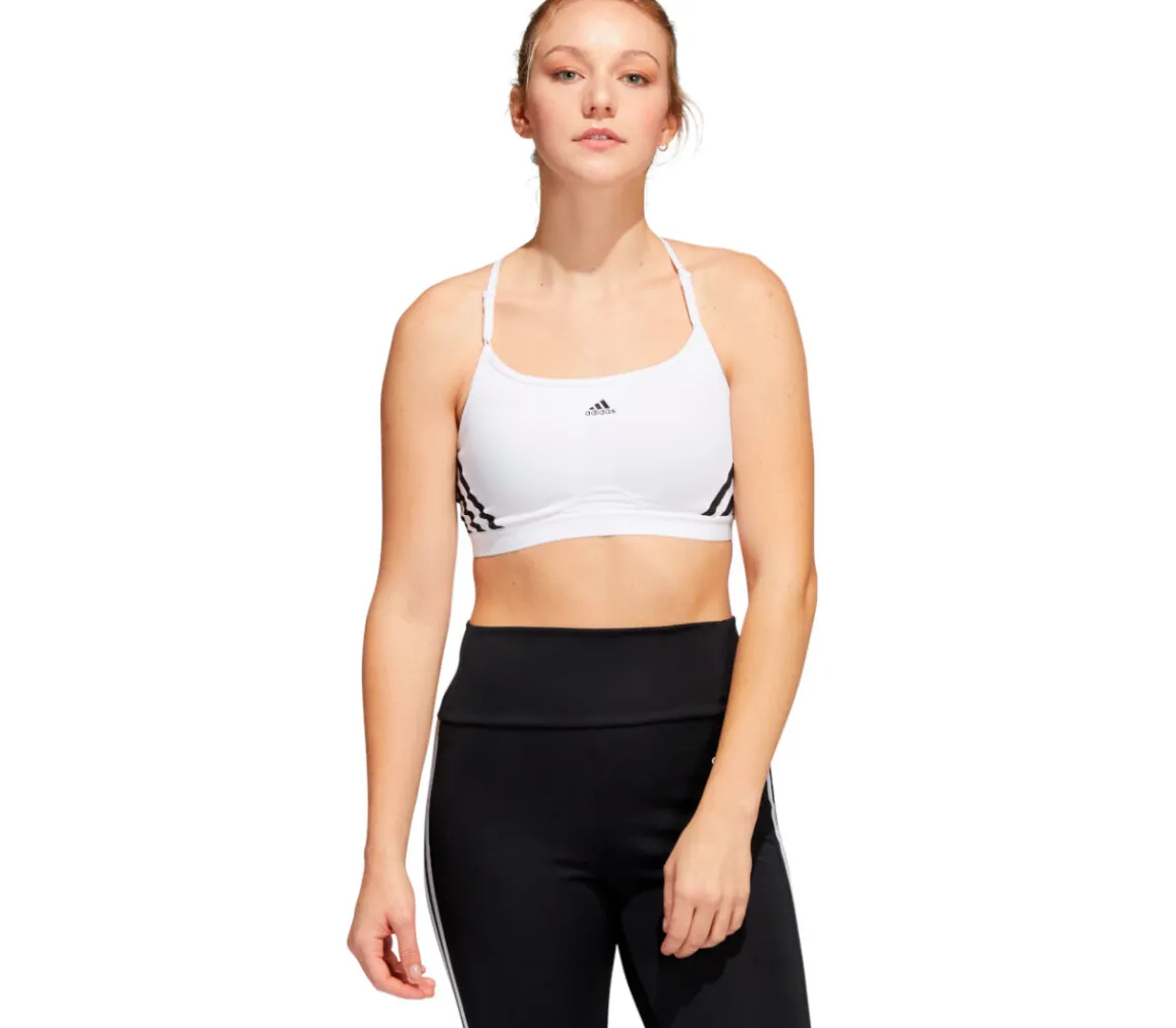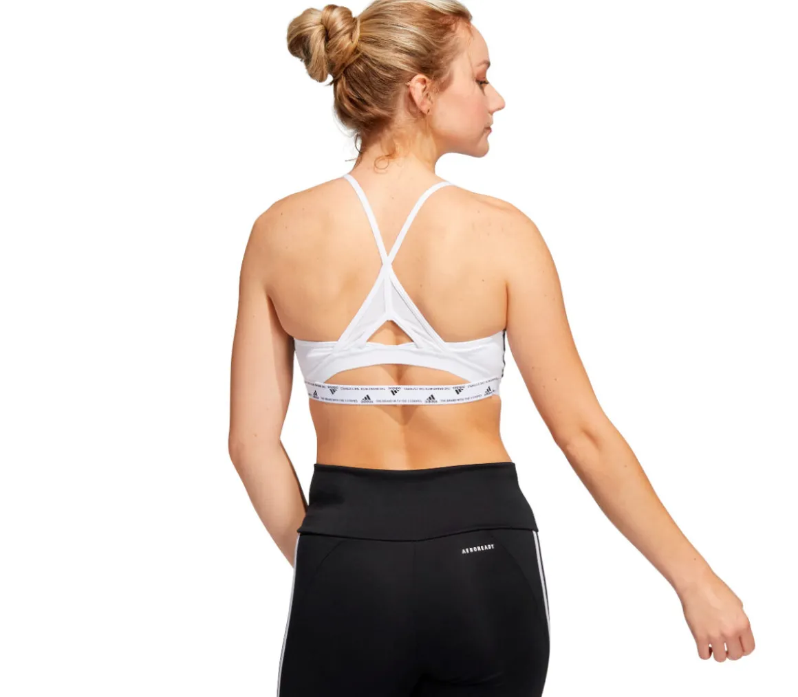 Il reggiseno sportivo Adidas AER LS 3S da donna ha la tecnologia anti umidità AEROREADY per mantenere la pelle fresca e asciutta.