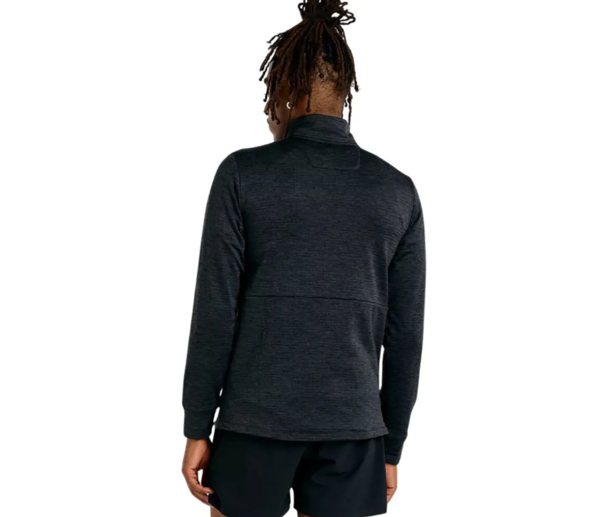 La felpa ha una chiusura a mezza zip e il colletto protegge bene la gola, è a maniche lunghe e presenta sul petto un rivestimento in DWR, che rende la zona impermeabile. Sul petto c’è una tasca con zip per riporre gli oggetti e la vestibilità è standard.