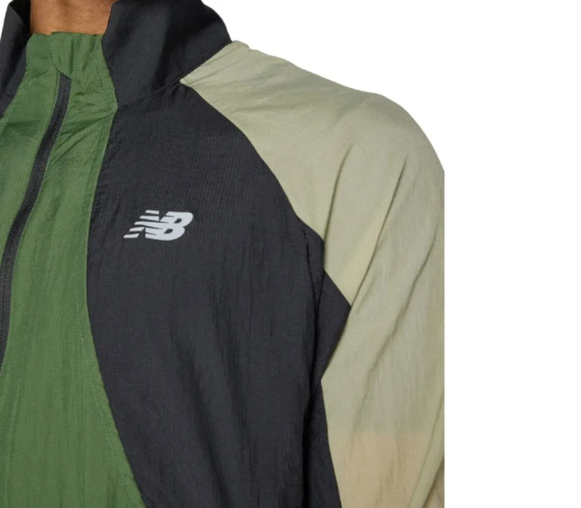 La giacca New Balance Better Run Water Resistant Jacket da uomo è anti vento e idrorepellente, grazie alla tecnologia Water Defy, che protegge dalla pioggia, e al tessuto in nylon ripstop, che assicura una maggior durata.