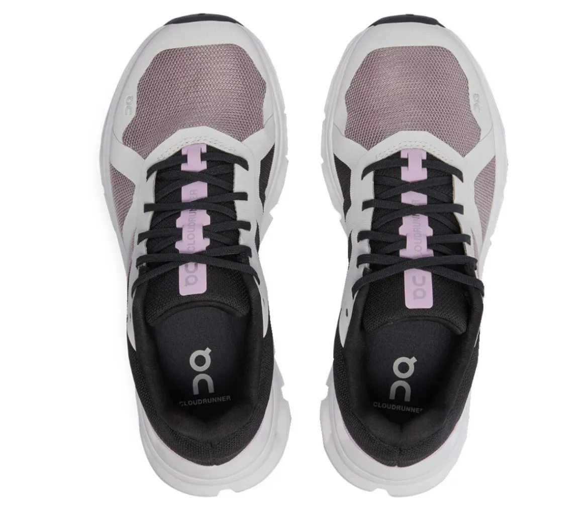 Le On Running Cloudrunner sono stabili, reattive e ideali per allenamenti e gare su asfalto sulle medie distanze, grazie alla morbidezza ed energia della schiuma Zero Gravity.