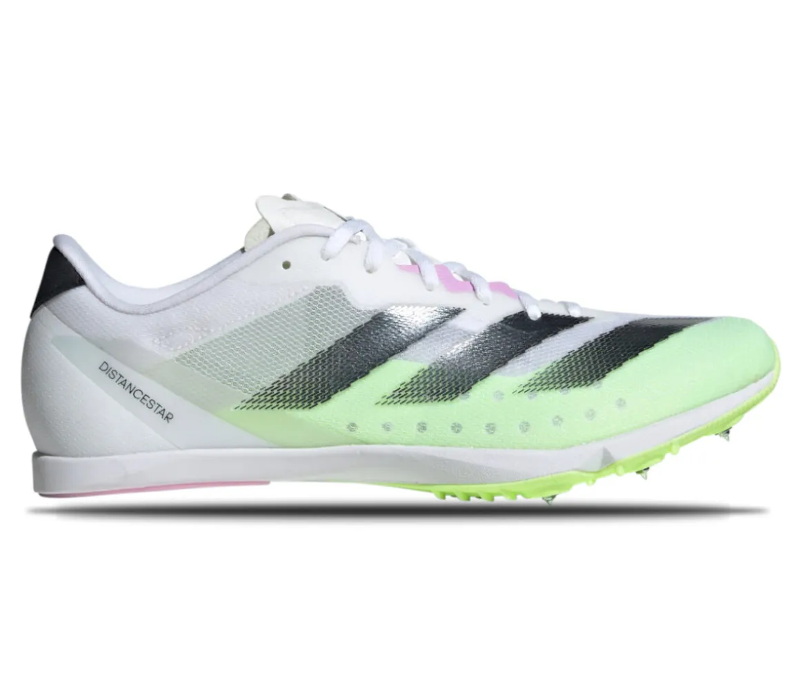 La Adidas Distancestar è una scarpa da atletica unisex ideale per i runner che praticano la specialità del mezzofondo, dagli 800 metri fino ai 5 Km su pista, grazie alla propulsiva schiuma Lightstrike Pro.